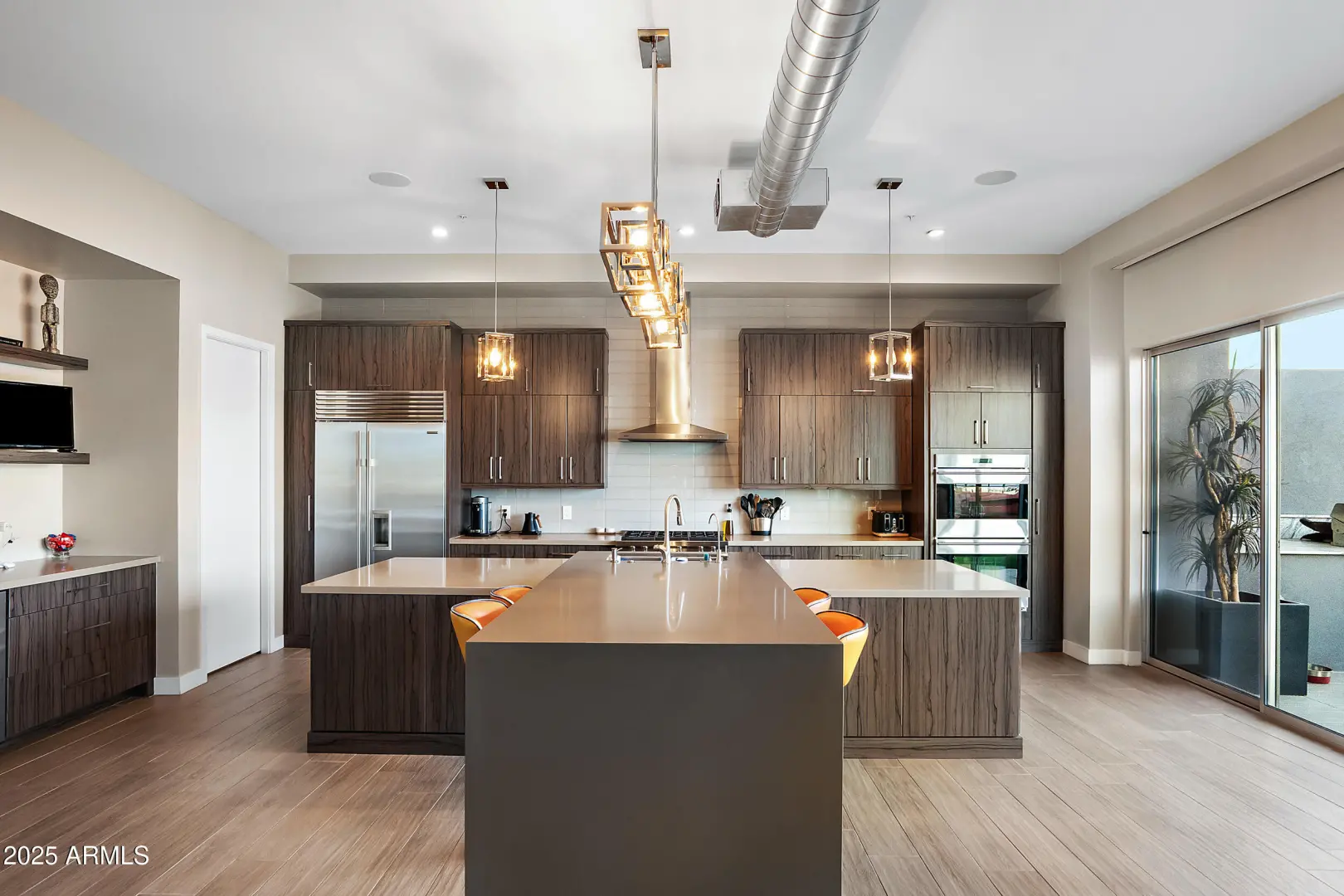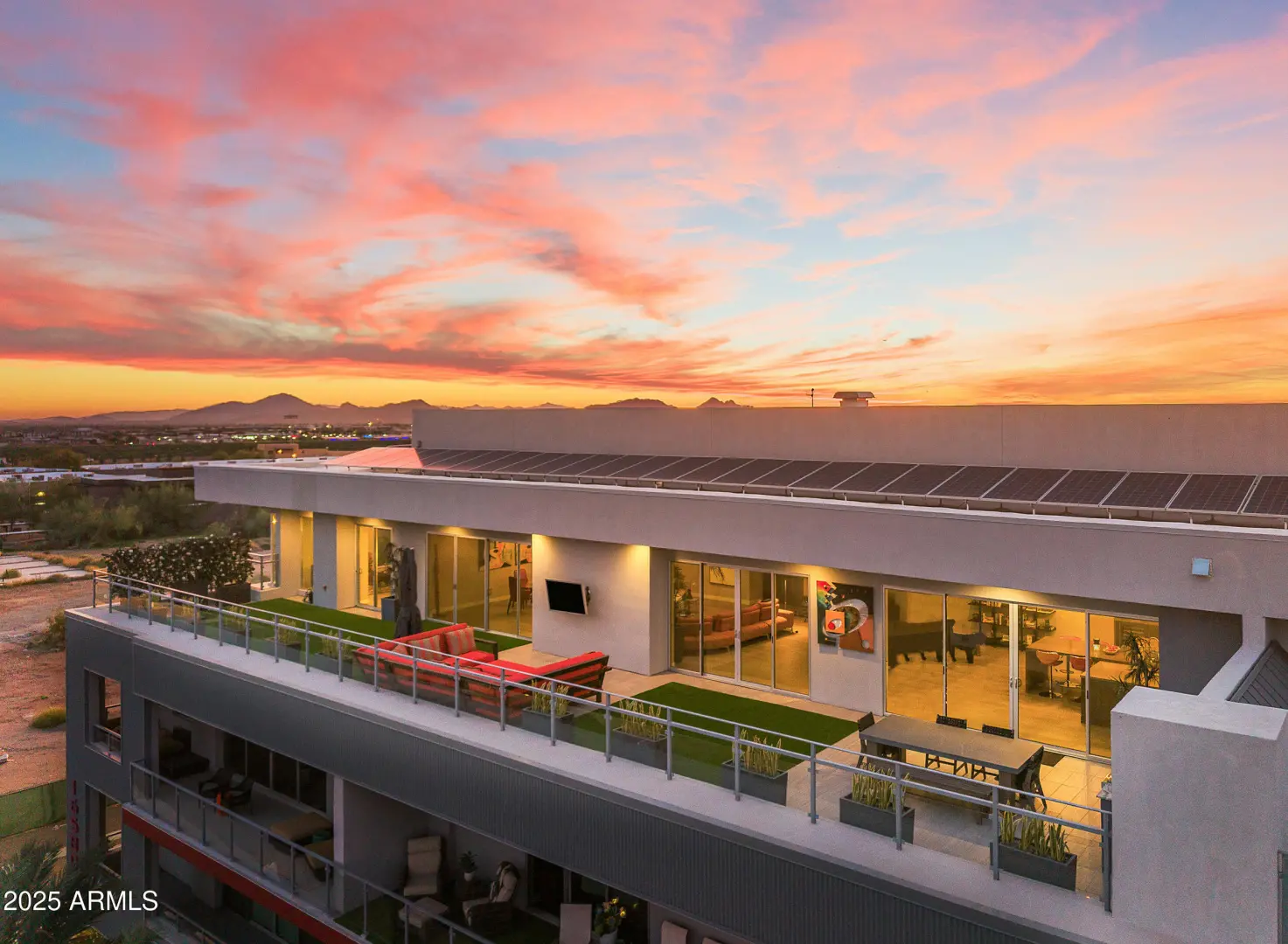 Welcome to The Penthouse at SOHO, an exceptional lock-and-leave residence at 16580 N 92nd St, Unit 4001. This one-of-a-kind home spans nearly 4,000 sq ft of interior living with 4 bedrooms and 4.5 bathrooms, plus approximately 1,500 sq ft of private outdoor decks, delivering almost 5,500 sq ft of refined indoor-outdoor living and unobstructed McDowell Mountain views. Designed for elevated entertaining, the chef's kitchen is outfitted with all Wolf appliances, a 6-burner gas cooktop, double ovens, two dishwashers, and a walk-in pantry, while a gas fireplace anchors the living space. Outdoor living impresses with patios on both sides, including a 1,400 sq ft turf patio featuring a built-in BBQ with side burner, outdoor TV, and speakers.