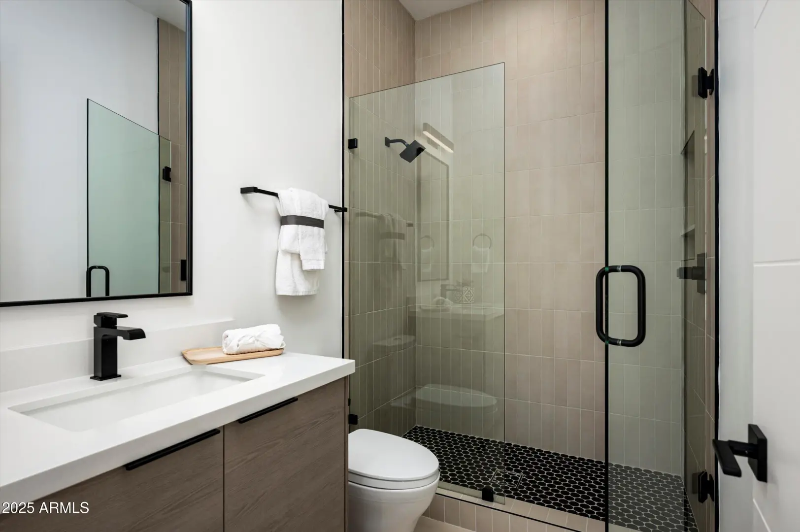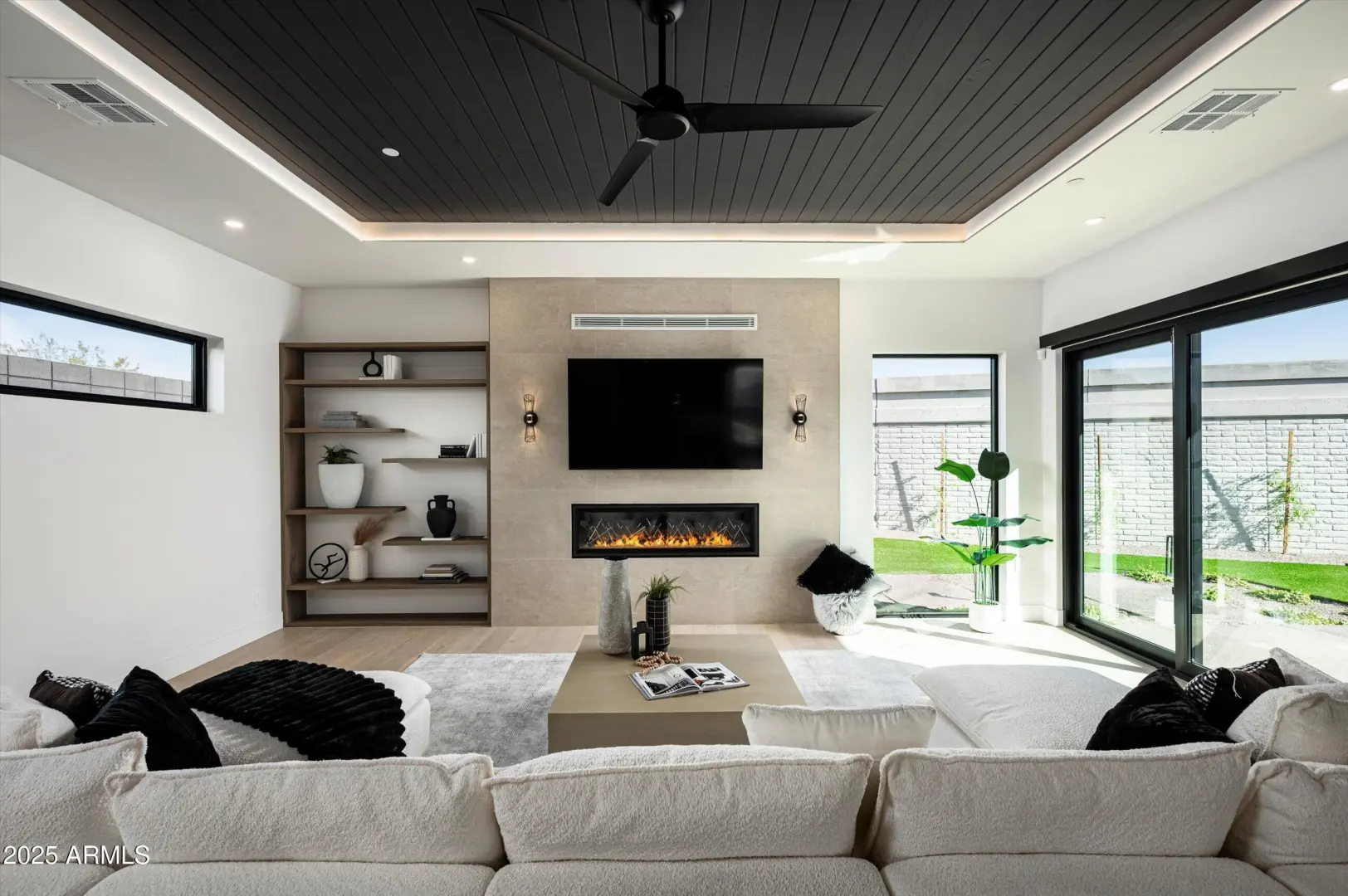 Sleek modern design by Blue Sky Homes completed in 2024. This impressive property delivers high design with low environmental impact. Encompassing 5,186 square feet, it includes 5 bedrooms and 5.5 bathrooms, all thoughtfully laid out to support health, comfort, and efficiency. Built with advanced materials and systems, it surpasses standard new builds by 50% in energy performance and holds both Energy Star and Indoor AirPlus certifications. Natural light pours through oversized windows, bringing warmth and brightness into every corner. The open-concept kitchen connects to the dining and living areas, anchored by a sleek 60-inch gas fireplace.