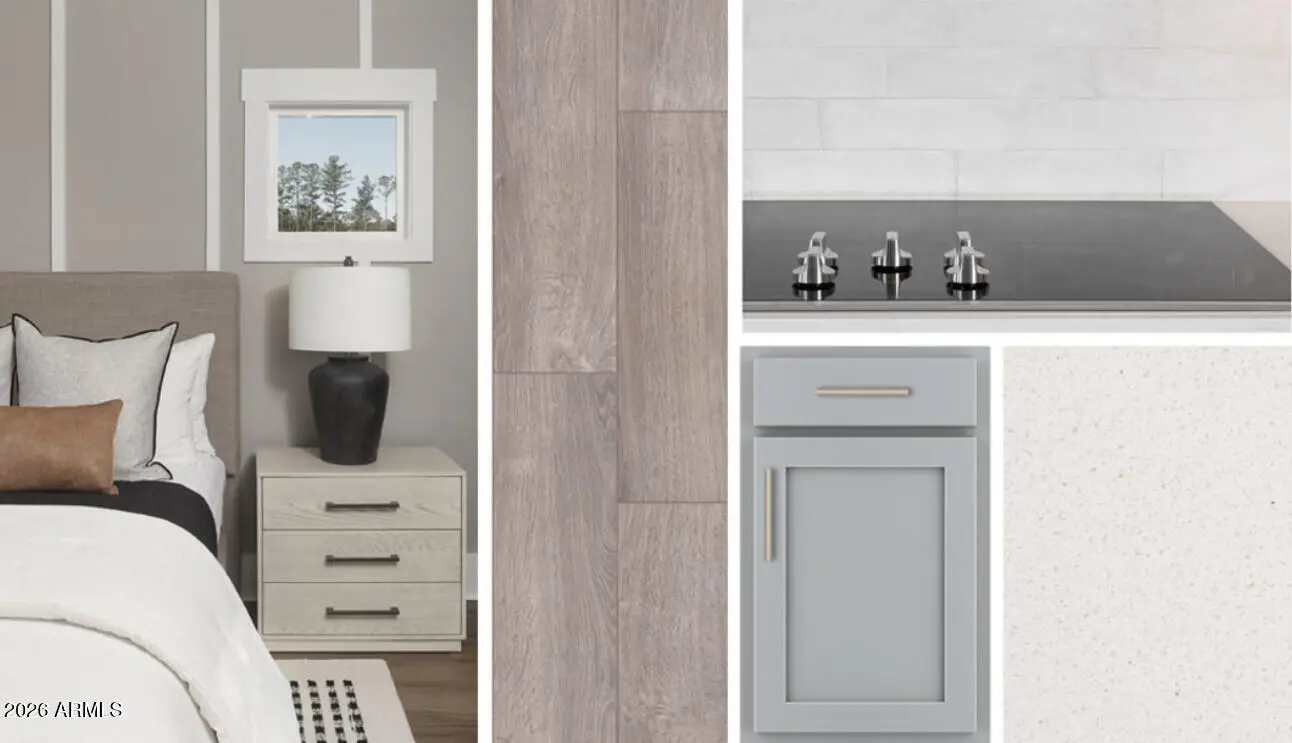 ''Located in San Tan Valley, this adorable single-story residence spans 2,171 square feet and features 3 bedrooms and 2.5 bathrooms. The home boasts a meticulously designed living space that blends modern elegance with lasting comfort. Seamlessly integrating open-concept living with the stunning Milan Collection, it includes a den, 8-foot doors, a 4-panel center sliding glass door, and a large kitchen with quartz countertops, 42'''' gray upper cabinets, and stainless steel appliances. The expansive owner's suite offers dual vanities and a large walk-in closet. Additional bedrooms provide ample space for family or guests, each thoughtfully designed for comfort. This home also comes with a washer, dryer, refrigerator, blinds throughout, a soft water loop, and a garage door opener.