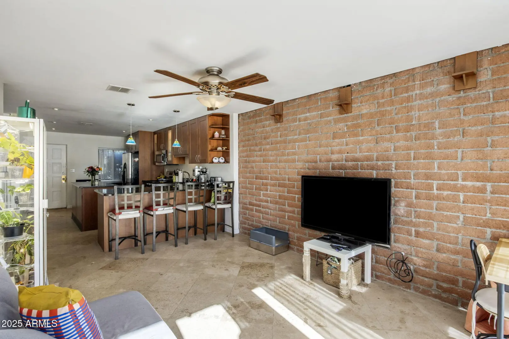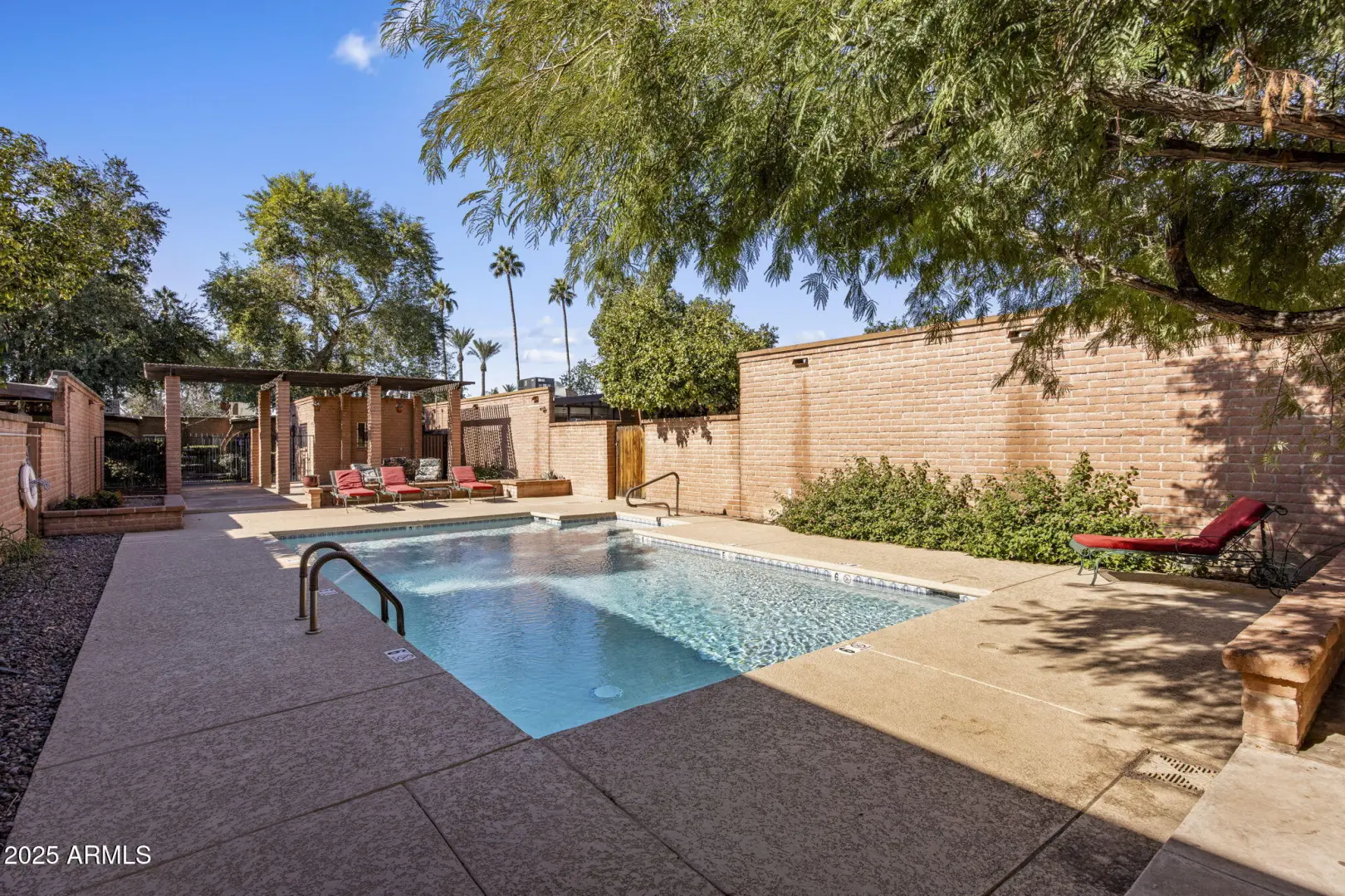 Tucked into the sought-after Arcadia Lite community of Spanish Gardens this 2-bedroom/1 bathroom patio home offers charm, a huge open concept kitchen w/ large island, ss appliances, soft close shaker style cabinets w/ granite countertops, travertine tile, a big walk-in closet in master, on site laundry, & the roof was redone in 2025! You'll love how the light pours into the main living areas through the floor-to-ceiling windows that open to a spacious private patio. Surrounded by mature landscaping, fountains, green space and 2 sparkling pools, you'll feel like you've found a gem in the heart of the city. Just minutes from the Biltmore, DT Phoenix, Sky Harbor, & the restaurants, coffee shops, & grocery stores that make Arcadia one of Phoenix's most walkable & well connected neighborhoods!