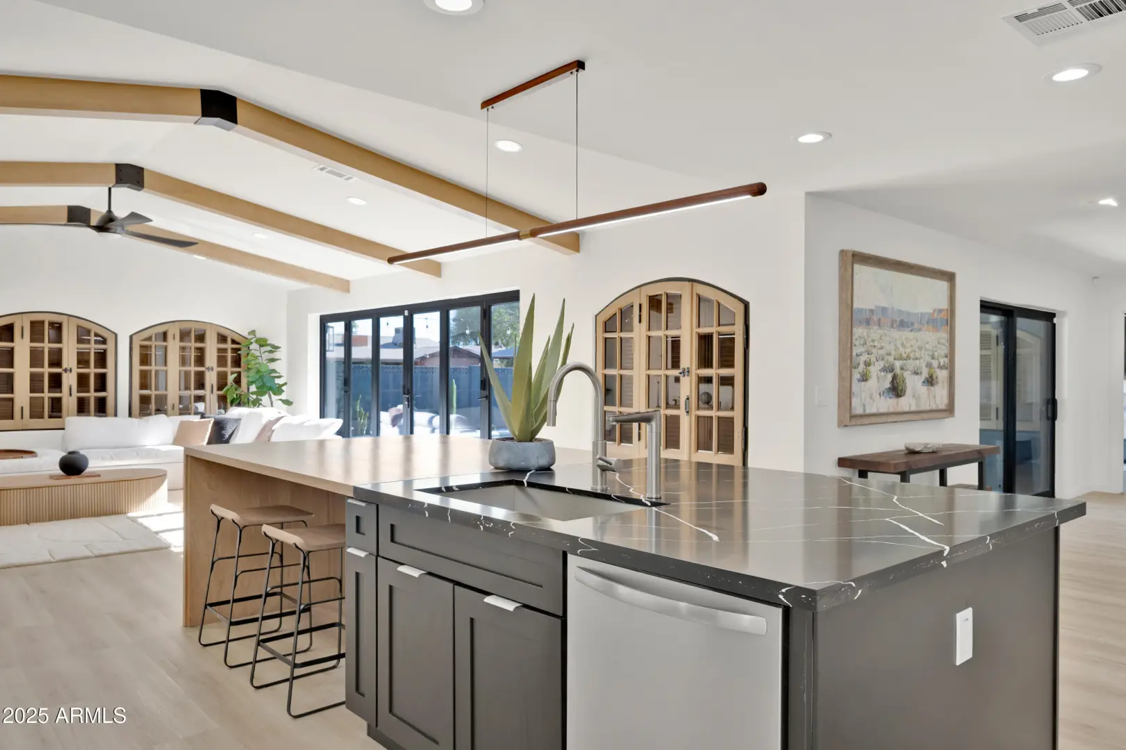 Charm, Modern Living, and South Scottsdale Luxury. Welcome to 81st Place. This beautifully updated South Scottsdale home blends authentic character with modern comfort, creating a warm and refined living experience in one of the area's most desirable neighborhoods. Featuring 2,204 square feet, four bedrooms, two bathrooms, and a backyard built for year-round living, the property delivers the perfect mix of style, function, and location. Unique details set this home apart. Rustic wood windows sourced from an early 1900s Arizona farmhouse bring charm and history into the design, while handcrafted cherry-wood office doors add an artistic touch. A vaulted living room enhances the open feel of the home, and a full wall of accordion doors opens to the backyard,