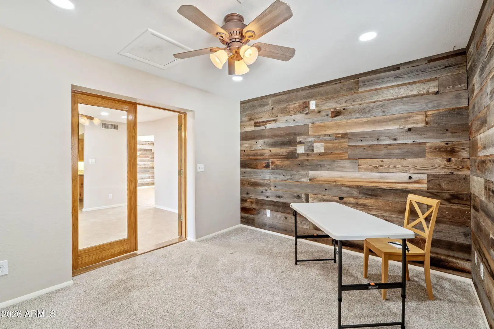 Welcome home to this pristine beauty full of charm, perfectly nestled in the heart of South Scottsdale! With newer roof, fresh interior and exterior paint, this property is move-in ready. Step inside to find beautiful reclaimed wood accents, ceramic tile throughout the main living areas and new carpet in the spacious family room just off the kitchen and dining area--perfect for relaxing or entertaining. The flexible floor plan offers 3 comfortable bedrooms plus a den and an office, ideal for working from home and/or creating your own bonus space. The kitchen is both stylish and functional, featuring warm knotty pine cabinets, slab granite countertops, and accent lighting above and below the cabinetry. LG stainless steel appliances, including a dishwasher, fridge and a gas range. French