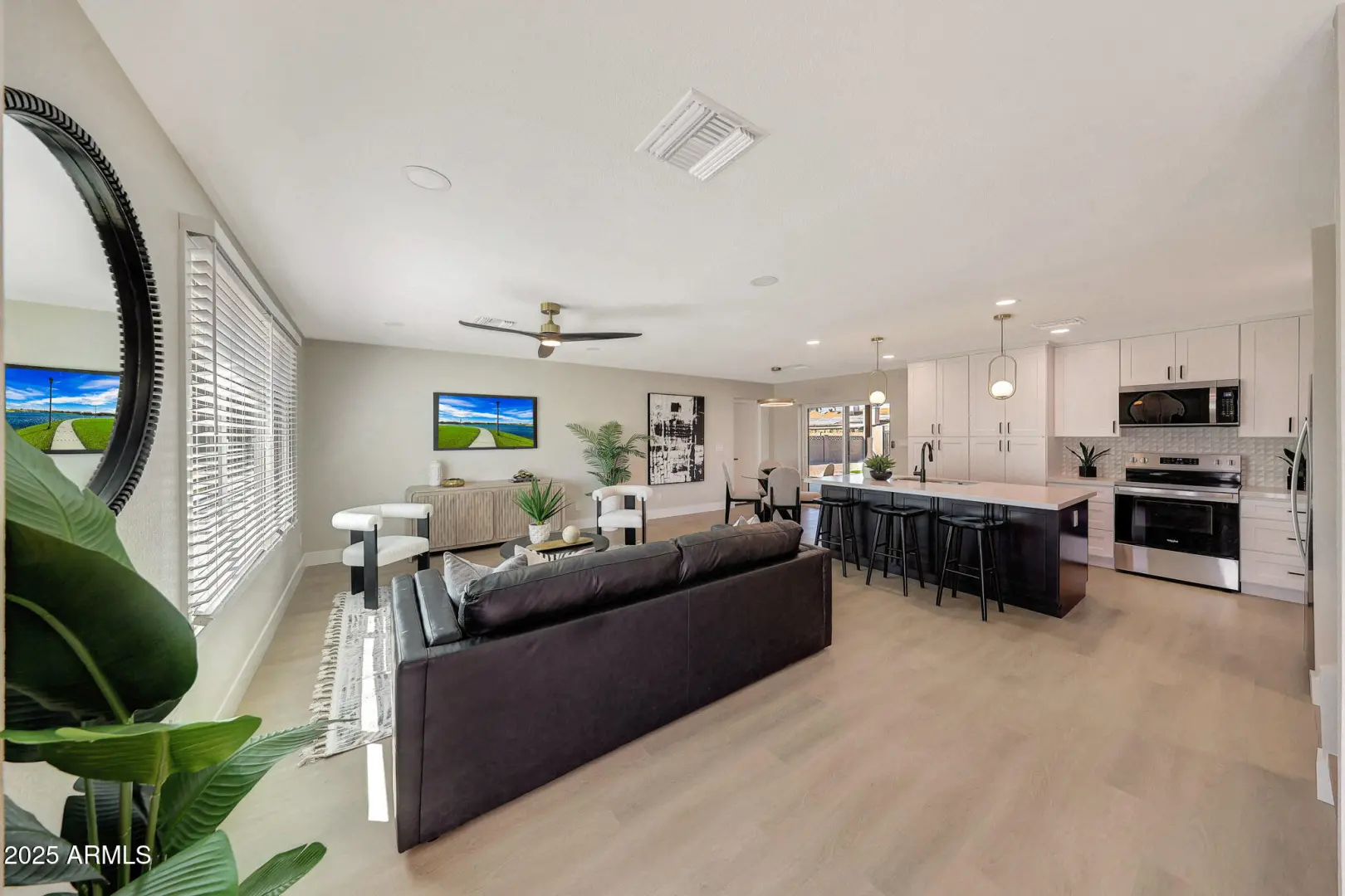 ATTENTION!! This is not a flip — it's a transformation! Rebuilt almost entirely from the ground up, this stunning 4-bed, 2-bath home has been completely re-imagined with a brand new modern floor plan that blends form and function seamlessly. With 200 square feet of new living space, every major system has been replaced including the roof structure, patio structure, underground and above-ground plumbing, full electrical and mechanical systems, stucco, garage door, and energy-efficient windows. Step inside to find a luxurious, designer-curated interior featuring all-new cabinetry, quartz countertops, premium lighting, fixtures, doors, hardware, flooring, and tile. The thoughtful layout includes a versatile flex room that doubles as a laundry and den, hidden behind a custom secret door.