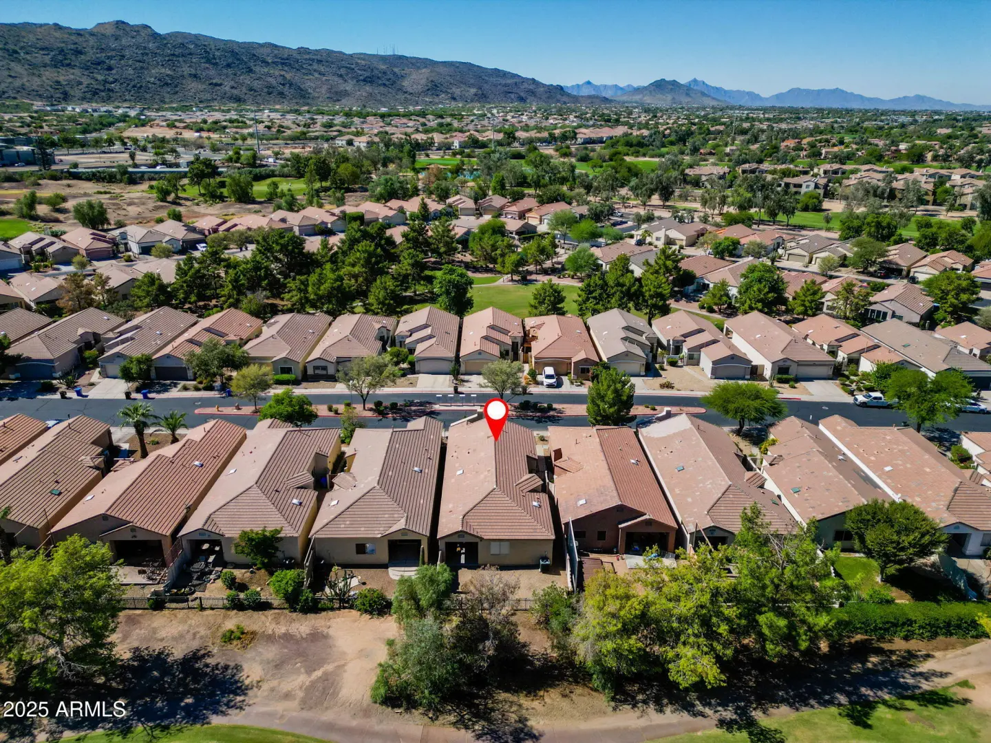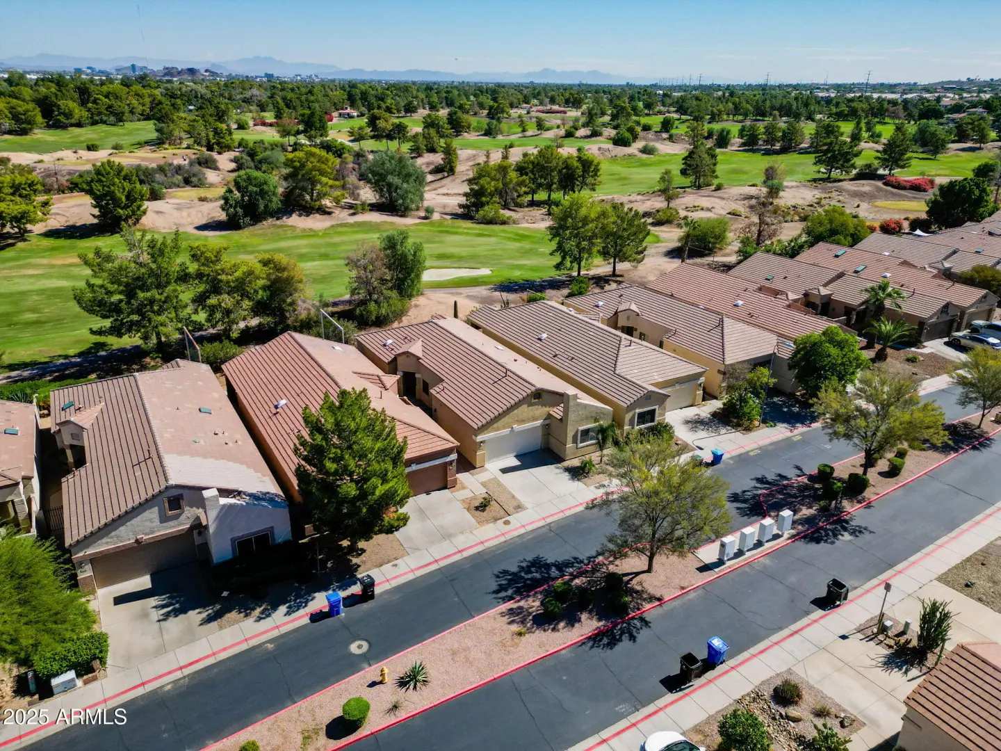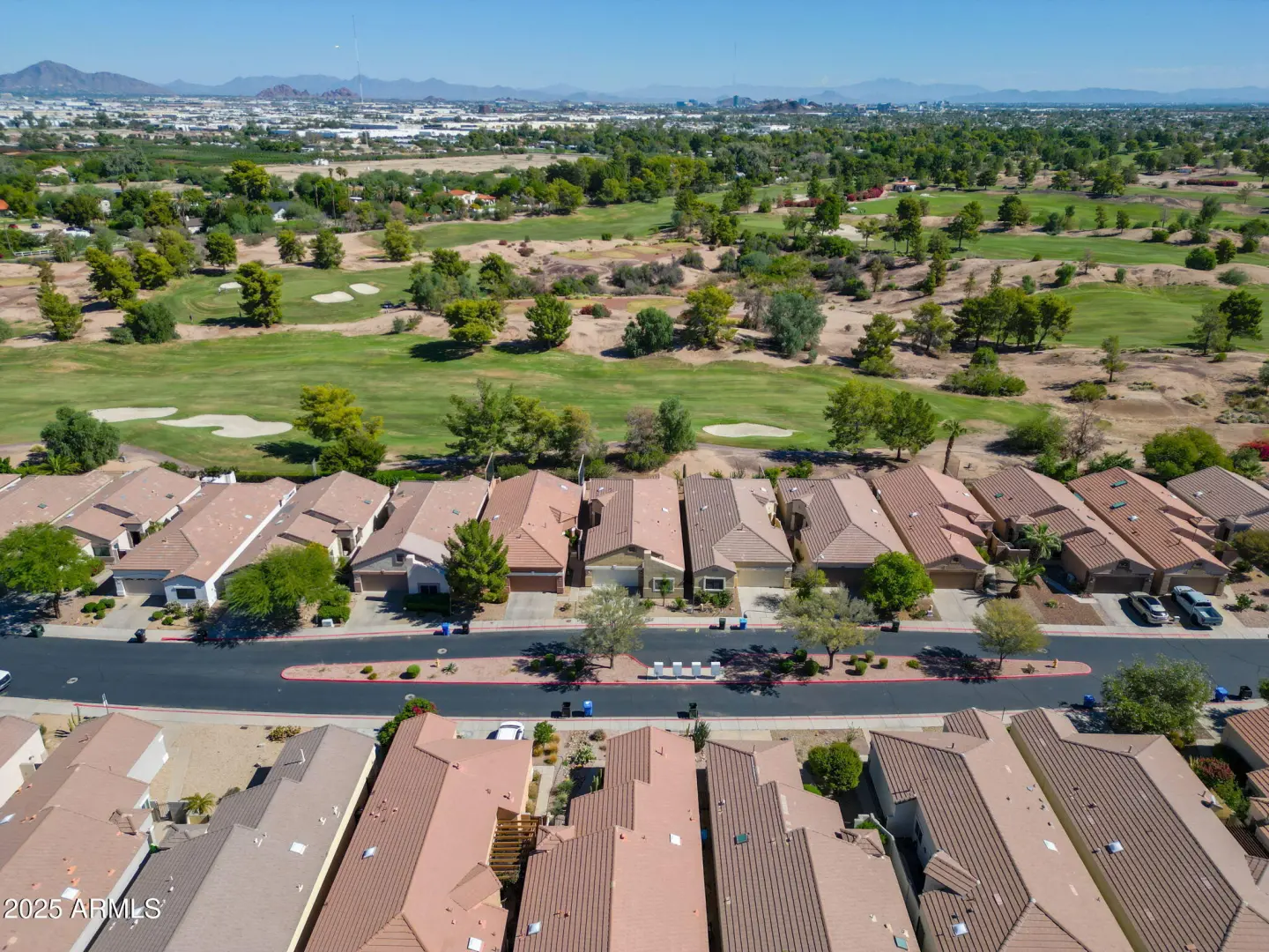 Welcome to Ravenswood Patio Homes, a gated community at the base of South Mountain offering stunning views and resort-style amenities including a lush greenbelt, pool, and spa. This beautifully refreshed 3-bedroom, 2-bath home sits on the 16th fairway of Raven Golf Club with direct views of the course. Recent updates include fresh interior paint, all-new lighting, and enhanced landscaping—creating an inviting, move-in-ready feel. The open floor plan features a spacious eat-in kitchen with peninsula bar, dining area, and great room that opens to the backyard and golf course. The primary suite offers golf views, patio access, a walk-in closet, and an updated ensuite with custom tile shower and private toilet room. One guest bedroom includes a walk-in closet and direct access