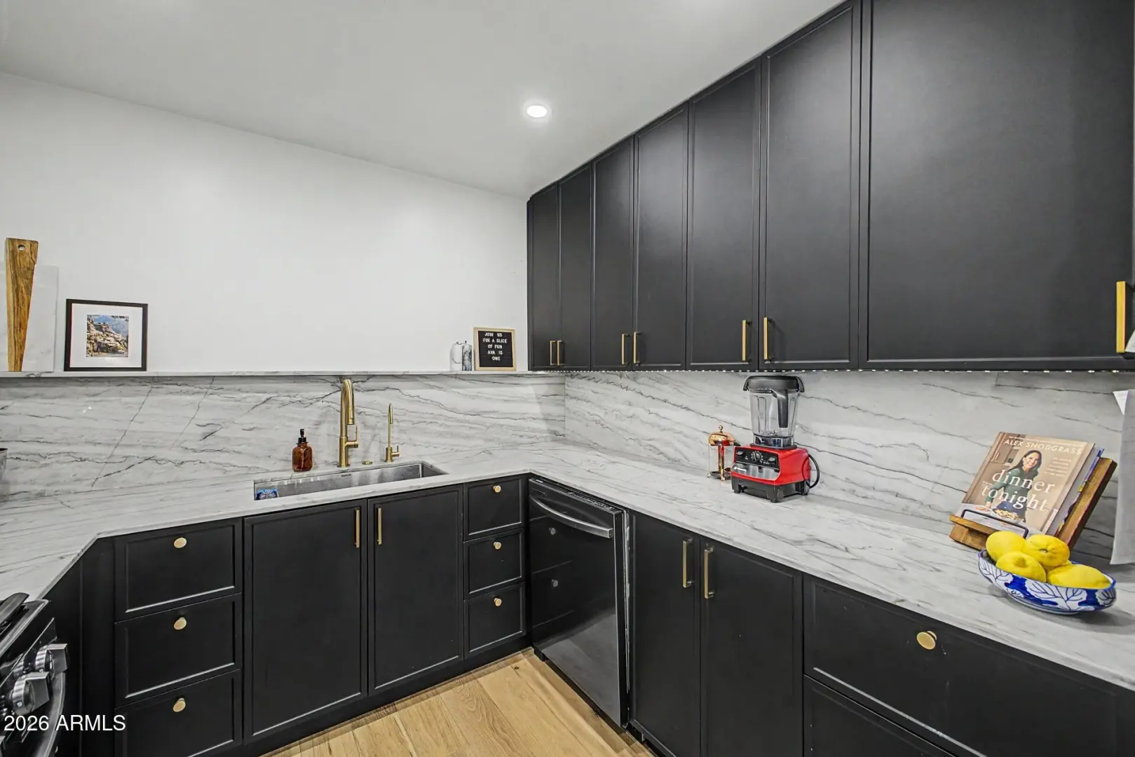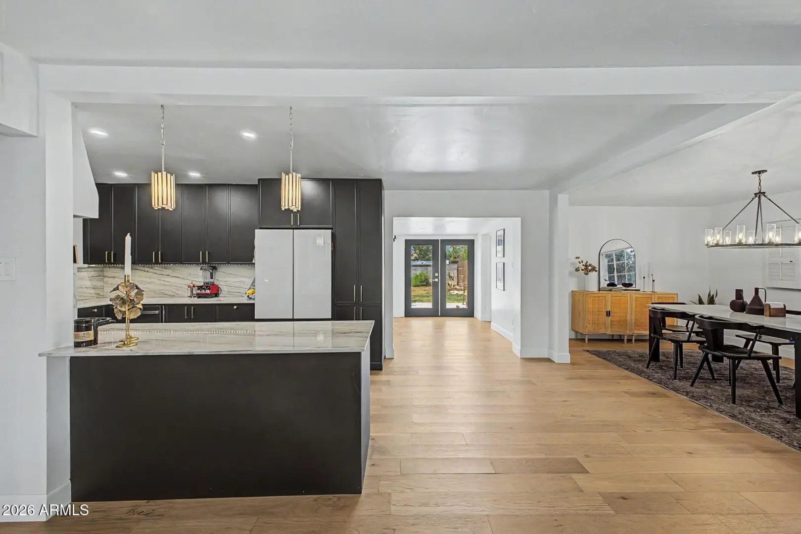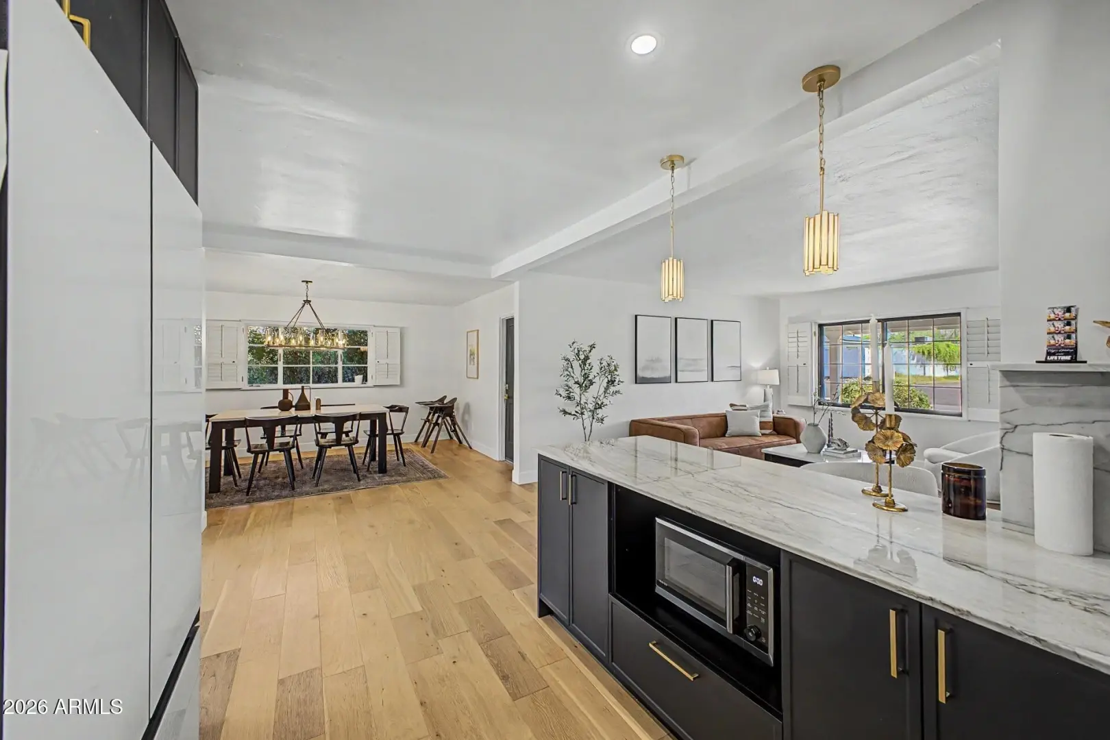 Fully reimagined in the original heart of Arcadia Lite. Timeless ranch architecture meets elevated, designer-driven finishes throughout. A fresh brick and stucco facade gives way to wide plank floors, custom cabinetry, and a chef's kitchen clad in quartzite with a statement range hood, premium Kraus fixtures, and a dedicated RO system. The open great room flows into a dining space anchored by a dramatic chandelier and a family room wired for surround sound with French doors to the backyard. A spa inspired guest bath pairs marble tile with a quartzite vanity. A fully remodeled primary suite, new roof, new windows, all new appliances, and fresh paint inside and out complete the transformation. Step outside to a pergola shaded patio, moments from LGO, Postino, and the Biltmore.