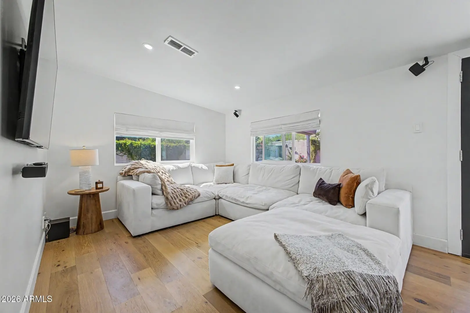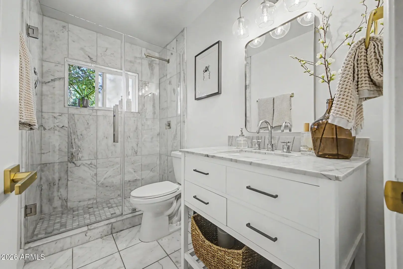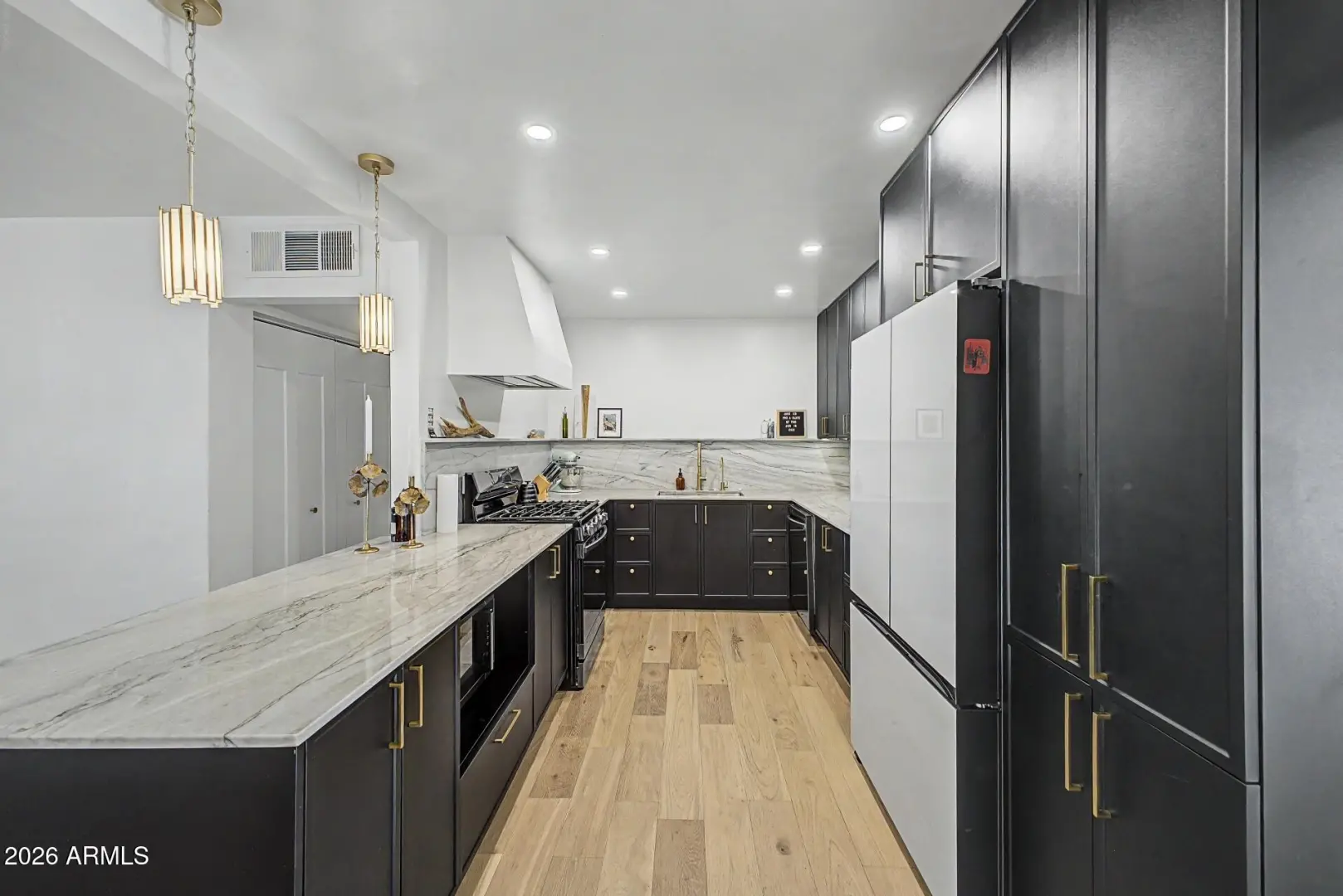 Fully reimagined in the original heart of Arcadia Lite. Timeless ranch architecture meets elevated, designer-driven finishes throughout. A fresh brick and stucco facade gives way to wide plank floors, custom cabinetry, and a chef's kitchen clad in quartzite with a statement range hood, premium Kraus fixtures, and a dedicated RO system. The open great room flows into a dining space anchored by a dramatic chandelier and a family room wired for surround sound with French doors to the backyard. A spa inspired guest bath pairs marble tile with a quartzite vanity. A fully remodeled primary suite, new roof, new windows, all new appliances, and fresh paint inside and out complete the transformation. Step outside to a pergola shaded patio, moments from LGO, Postino, and the Biltmore.