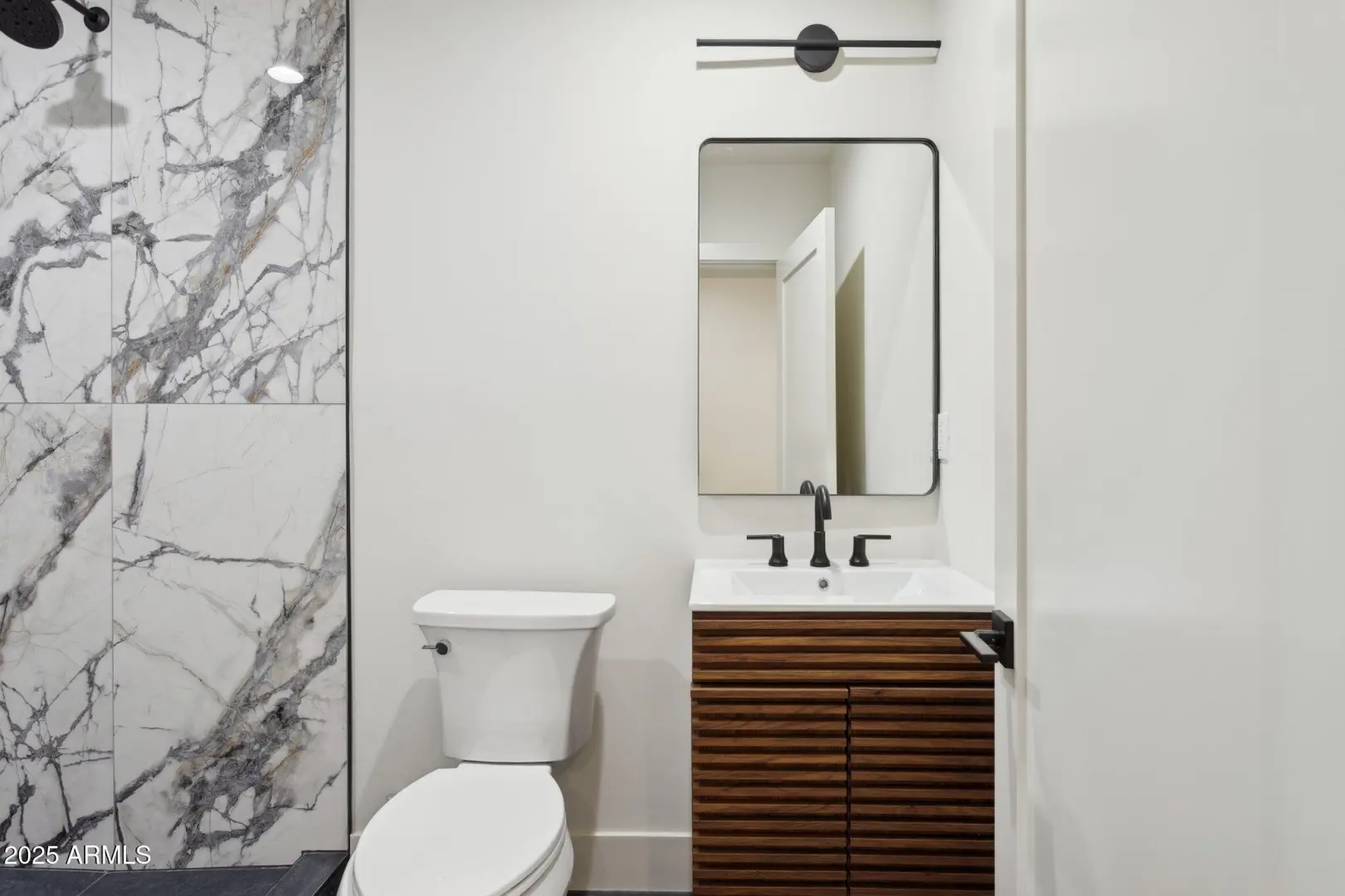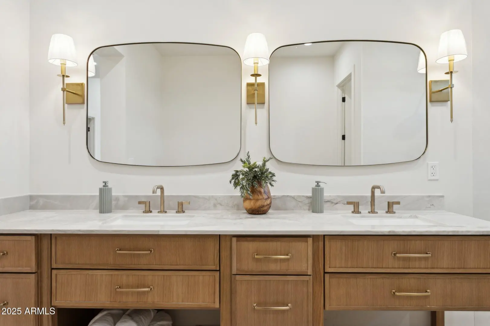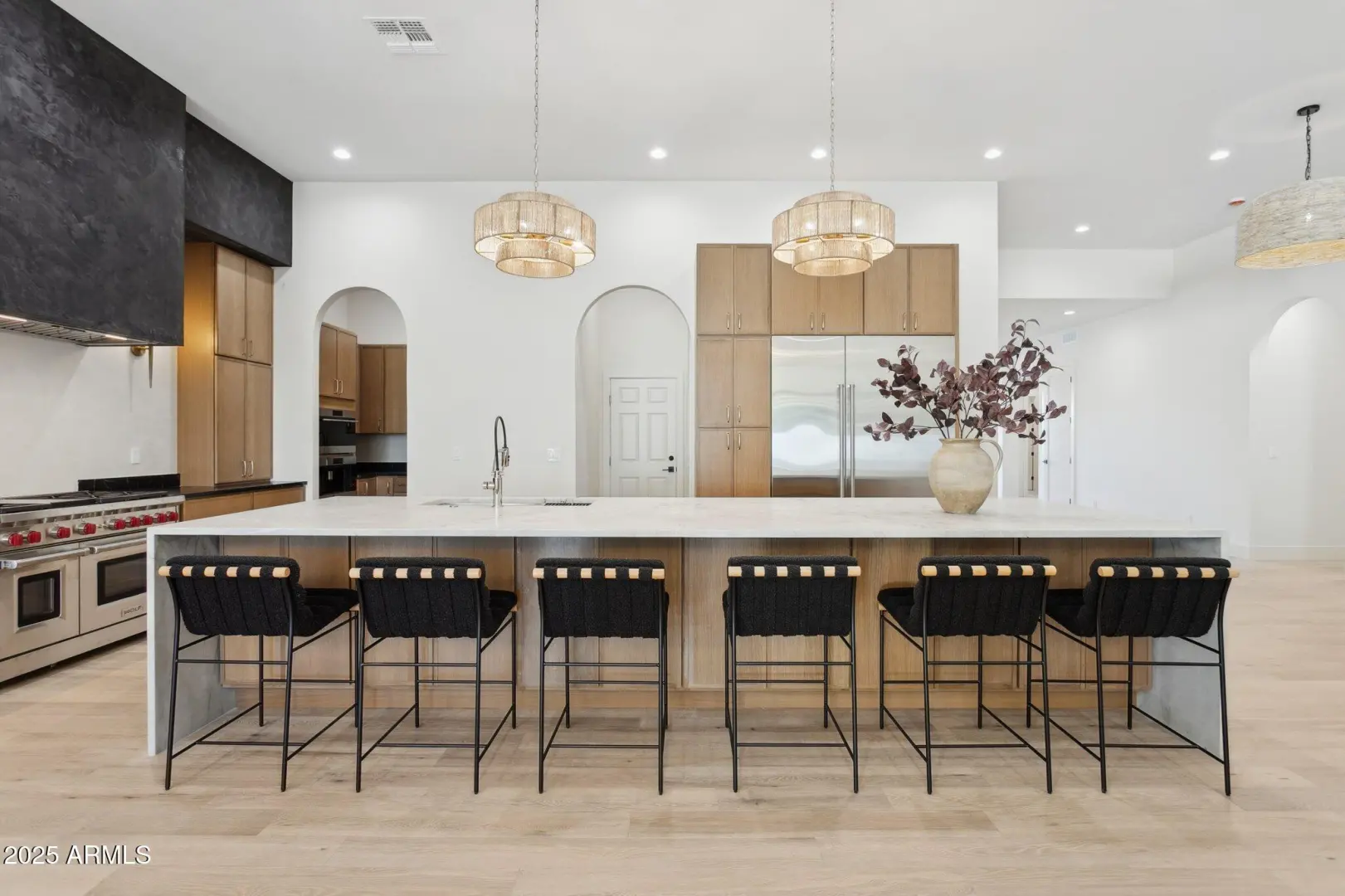 Set on a quiet, walkable Arcadia Lite street, this beautifully new-constructed residence delivers the ease and polish of a fresh, modern home without sacrificing the charm of an established neighborhood. Spanning roughly 3,800 square feet with airy natural light and an open flow made for real life—easy mornings, lively dinners, and everything in between; every corner is cohesive by design. A generous great room anchors the home, connecting seamlessly to a showpiece kitchen and dining space that feels equal parts stylish and welcoming. With five bedrooms and five-and-a-half baths, the layout offers comfort and privacy for everyone—ideal for families, guests, or a dedicated office/gym setup. The backyard is your own shaded retreat. A sparkling pool with a Baja shelf sets the scene for