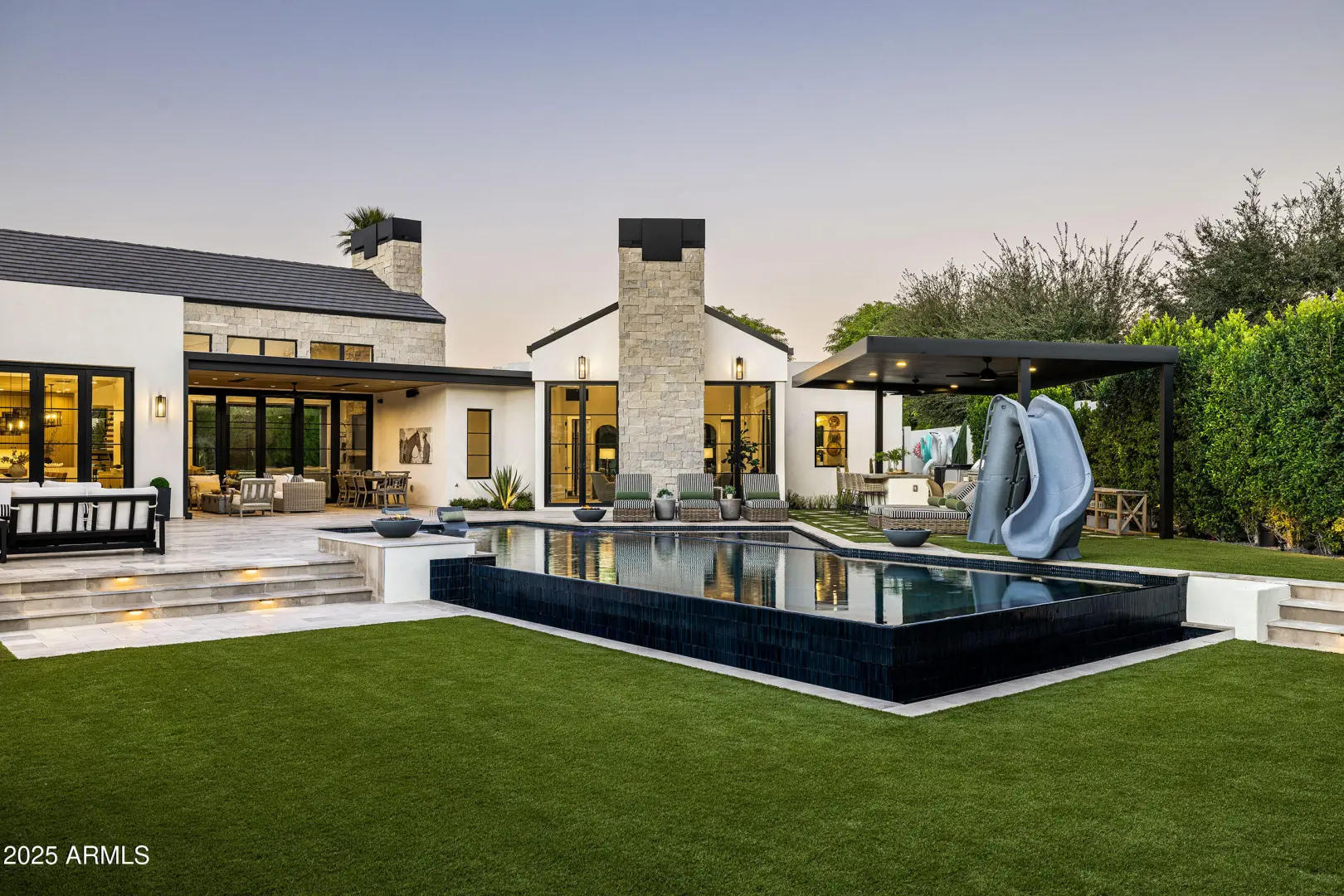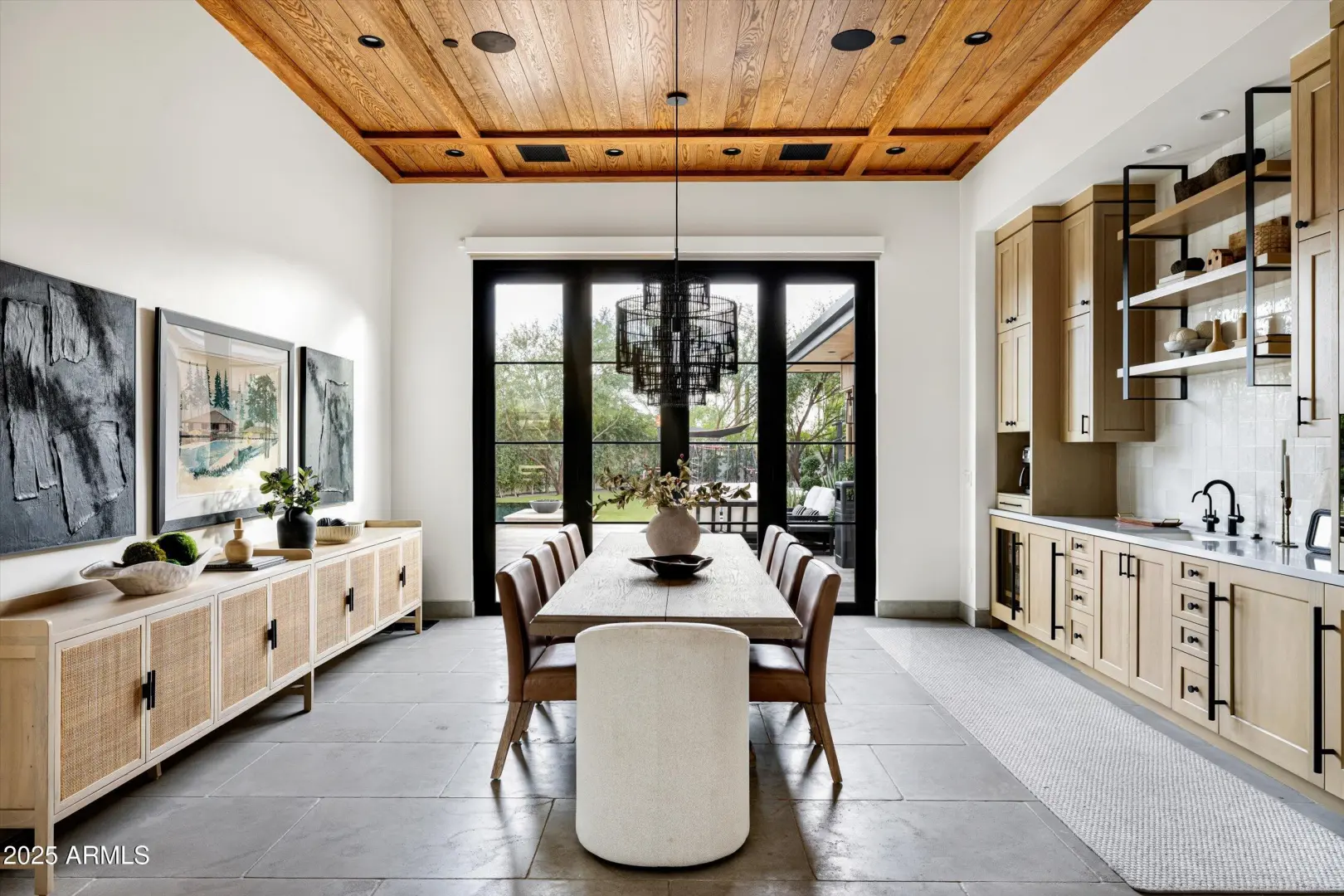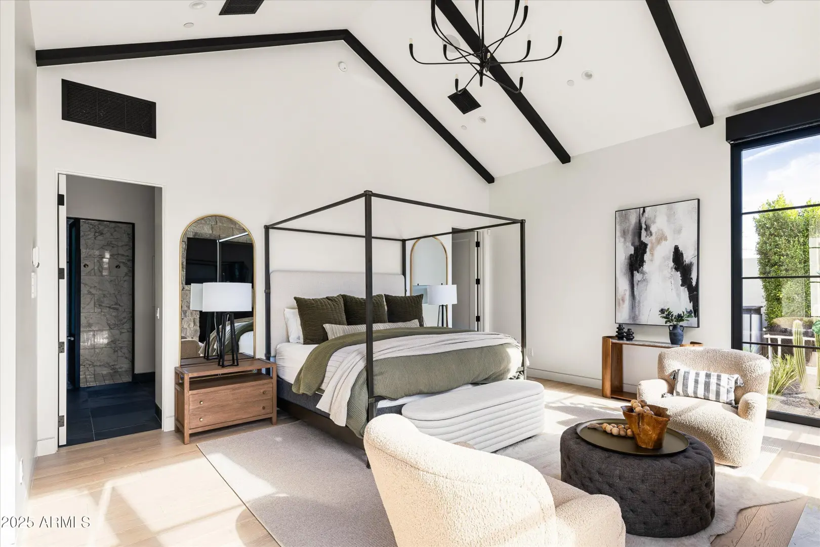 Every impeccable room of this modern showpiece is absolutely spectacular, loaded with perfect design artistry and architectural excellence. From the moment you arrive, you'll be struck by the incomparable attention to detail and unique elements. The unrivaled beauty begins with the grand entrance and continues throughout every inch of this exquisite home. The open spaces seamlessly flow from the inside out offering the ultimate living and entertaining experience. The gourmet kitchen will satisfy any aspiring chef with the finest appliances, chic white porcelain covered island, and an additional back kitchen with plenty of privacy for prep and serving. In addition, the floor plan features a sprawling great room with soaring ceilings accented by exposed wood beams adjacent to an elegant