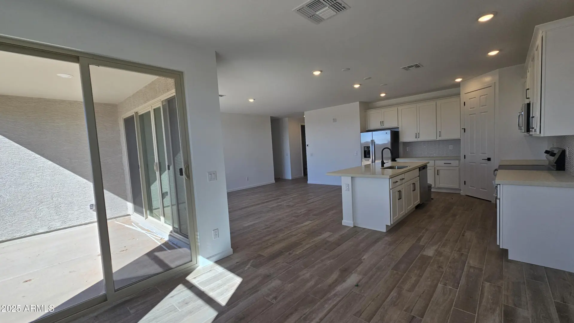 Welcome to a stunningLarkspur, a single-story home blending elegance and functionality. This 1957 sq ft home features 3-bed, 2.5-bath and a versatile den plus a 2-car garage. Enjoy open-concept living with a sunlit great room flowing into a gourmet kitchen, boasting white 42'' cabinets, quartz countertops, and a mosaic backsplash. The oversized island and stainless appliances make entertaining a breeze. Wood-look tile and 8-foot doors enhance the modern vibe. The primary suite offers a spa-like bath with dual sinks, a walk-in shower, and a large closet. A covered patio invites outdoor relaxation. Move-in ready with blinds, appliances, and a soft water loop. Community amenities include a pool, splash pad, fitness center, sports courts, trails, and a clubhouse. Embrace a stylish,