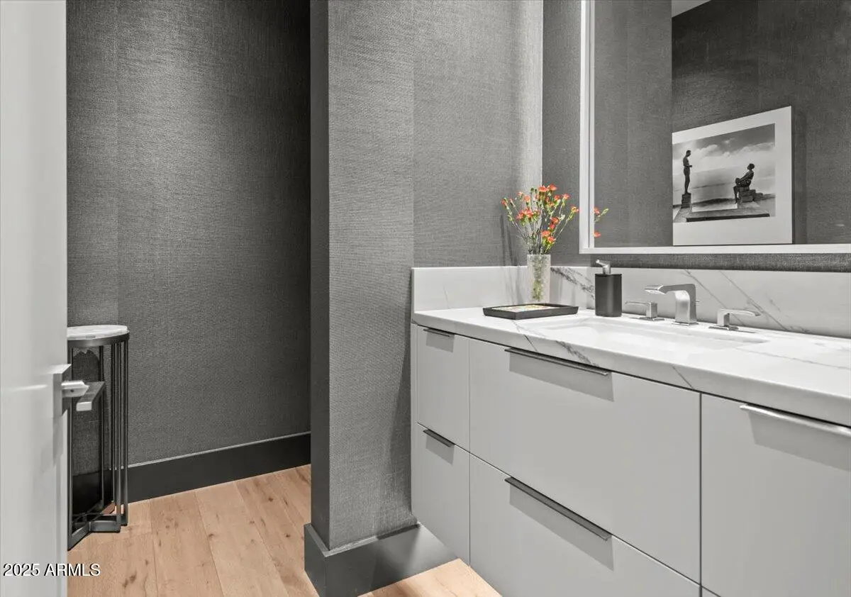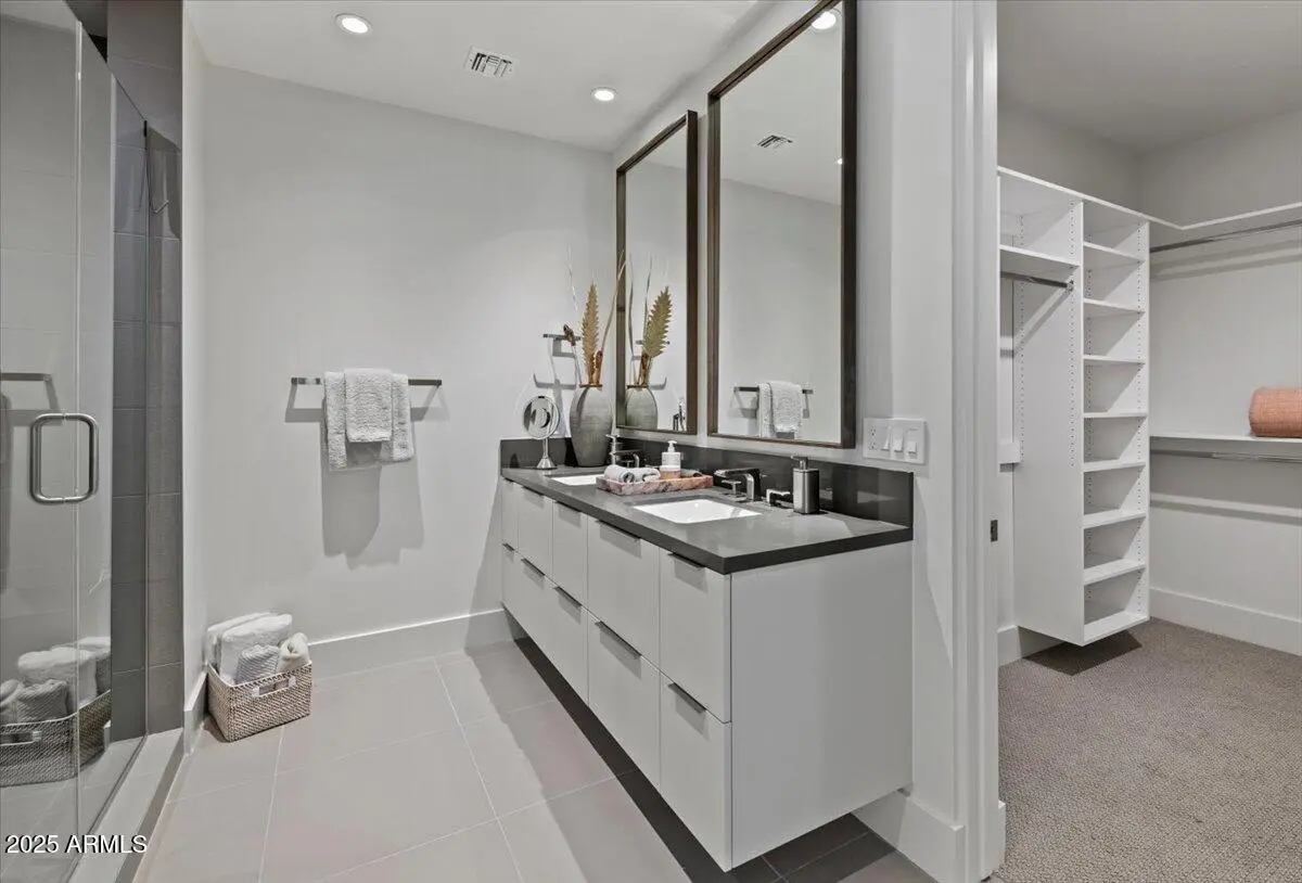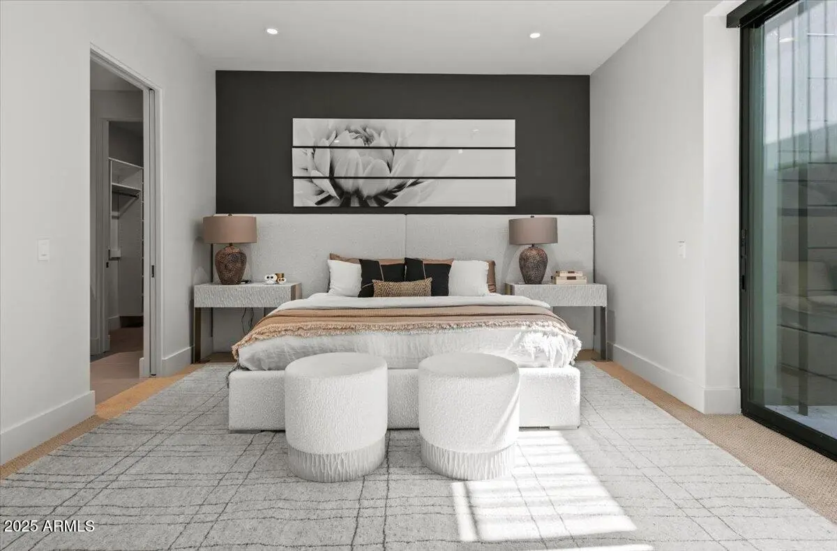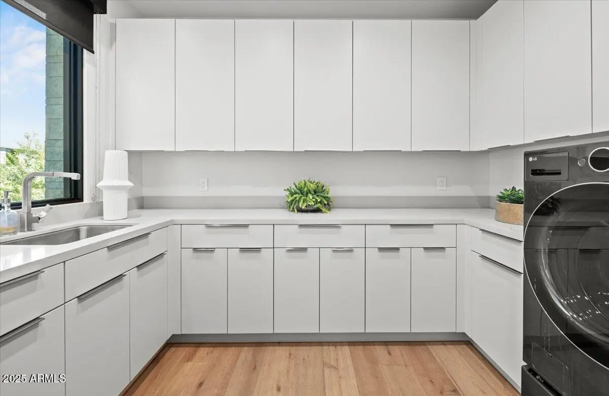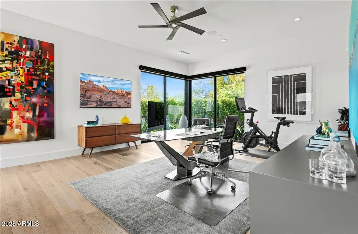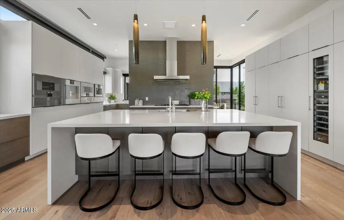 Stunning modern home in gated Azure, Paradise Valley. Ideally positioned on a premium homesite with lovely views of Camelback and Mummy Mountains. Designed for entertaining and comfort, this residence offers seamless indoor-outdoor living with a spacious yard, a covered patio with remote shade and patio heaters, two beautiful casitas, a pergola, putting green, and open play space. Inside, a modern gourmet kitchen features Gaggenau and Thermadore appliances, custom cabinetry, a prep area and a breakfast nook. Additional features include an elevator, custom closets throughout, advanced smart-home technology system that controls music, blinds, and security, a water purification system. This property is a true blend of luxury, comfort, location, and design in one of PV's premier communities.