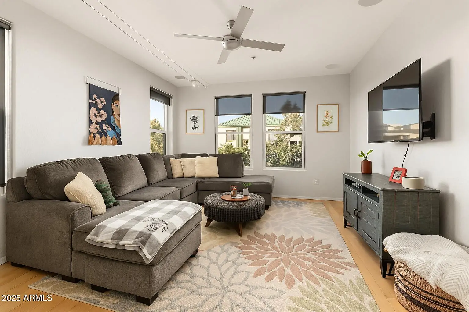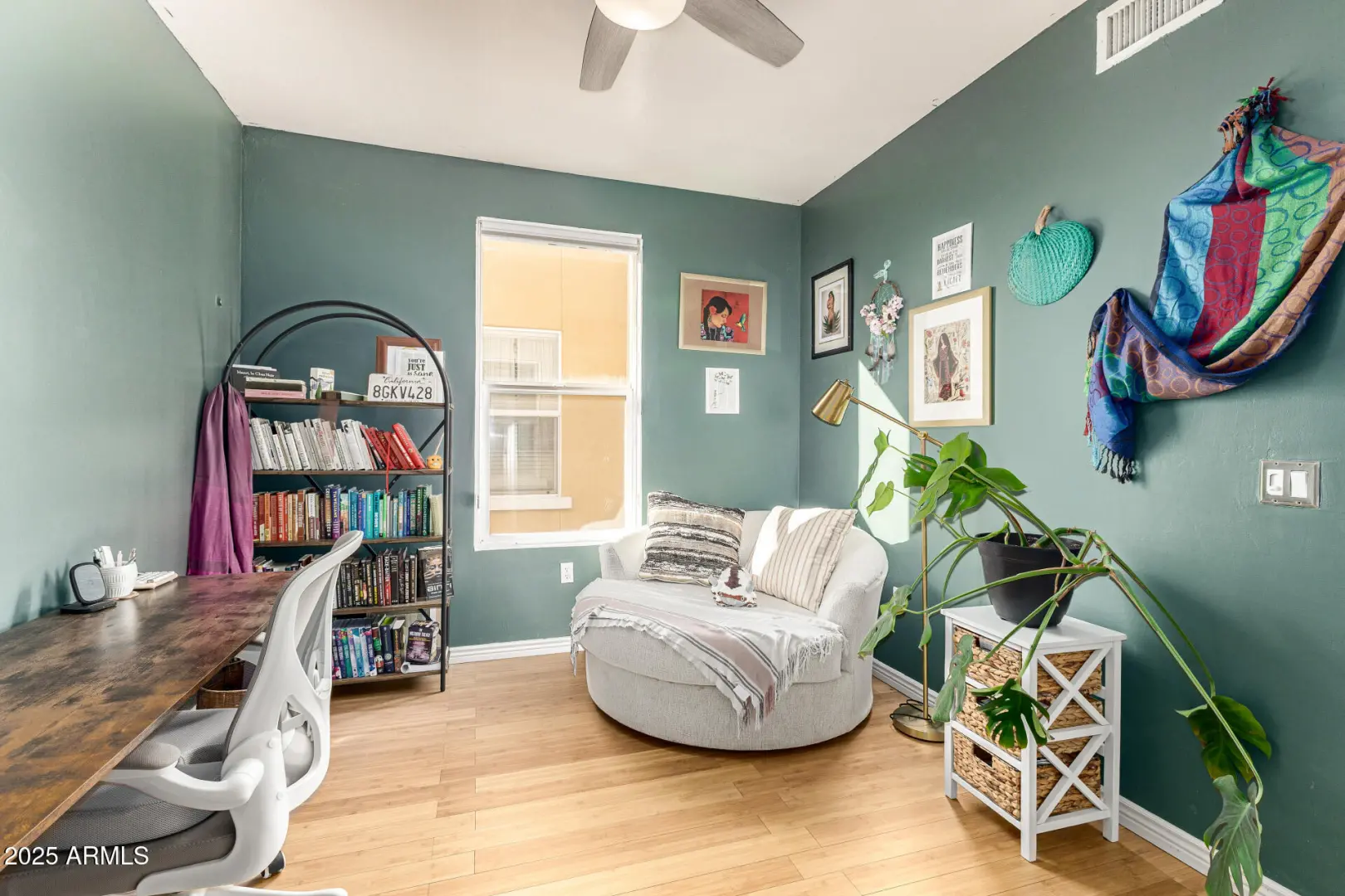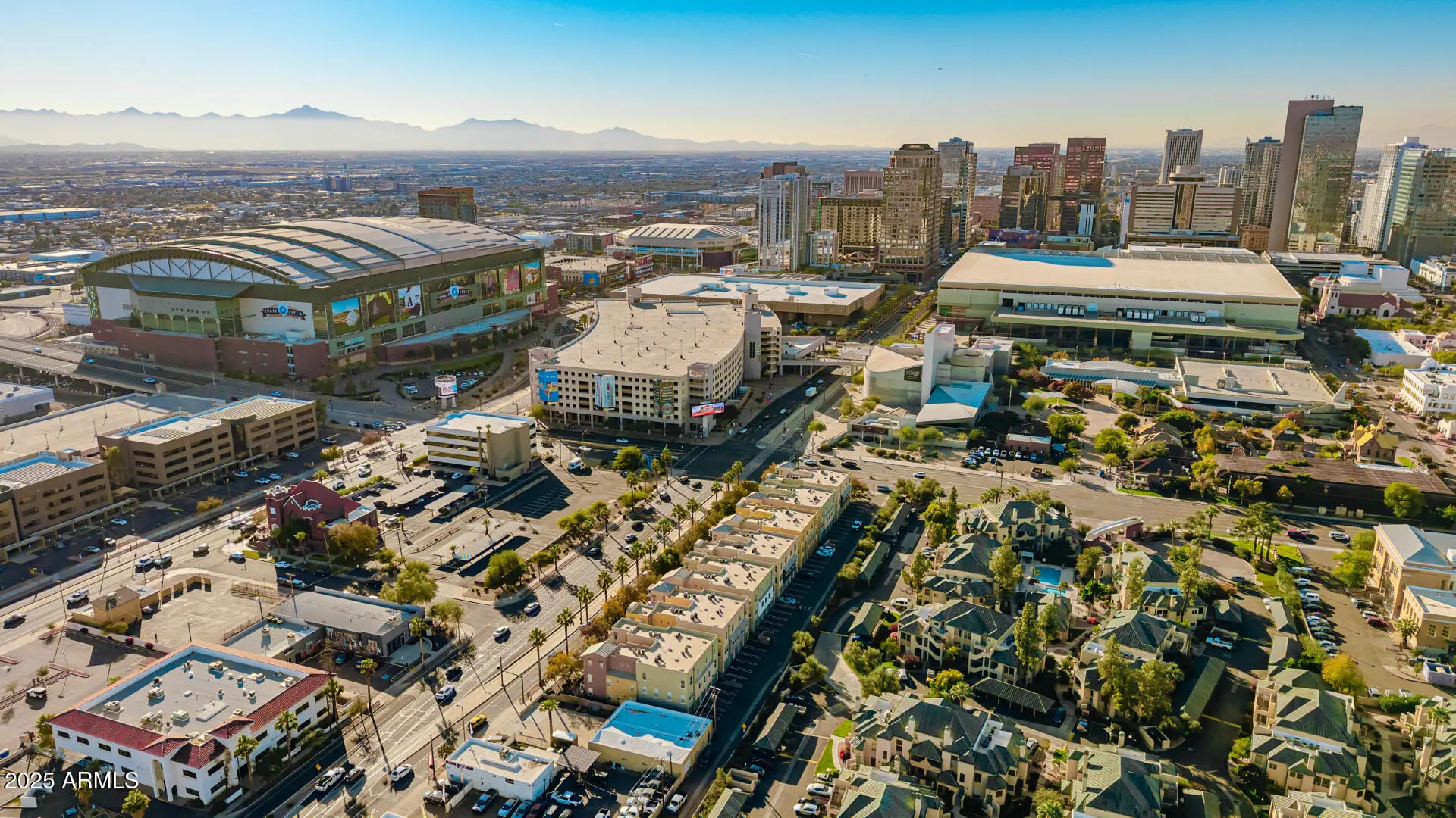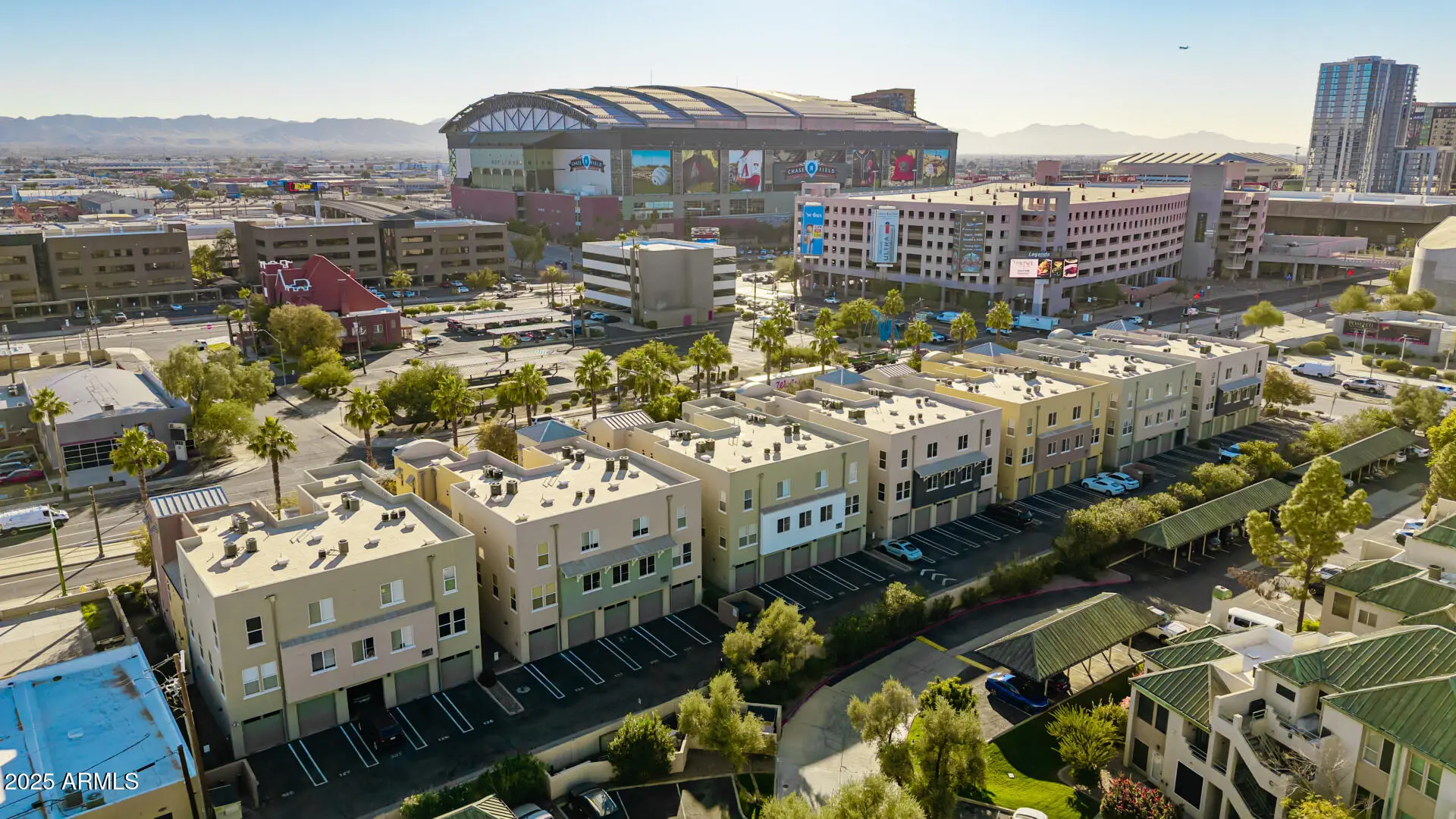 Discover urban living at its finest in this beautifully updated Downtown Phoenix townhome, perfectly situated just minutes from the heart of the city. Step inside to an inviting open layout featuring modern finishes, warm hardwood flooring, and a gourmet kitchen with granite countertops, stainless steel appliances, and a stylish slate-tile backsplash. A spacious loft overlooks the main living area, offering endless flexibility—ideal for a second lounge, creative studio, fitness area, or media space. Just off the loft, a thoughtfully designed office nook with slate-tile accents provides the perfect work-from-home setup or versatile bonus space. The generous primary suite provides comfort and privacy, while the rare 2-car tandem garage offers exceptional convenience for this downtown