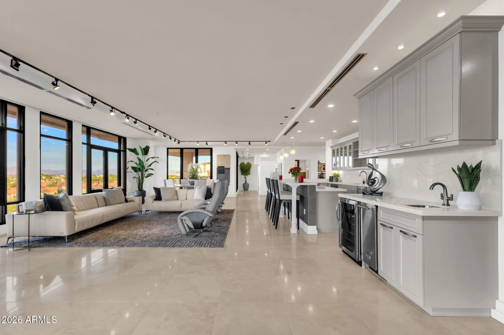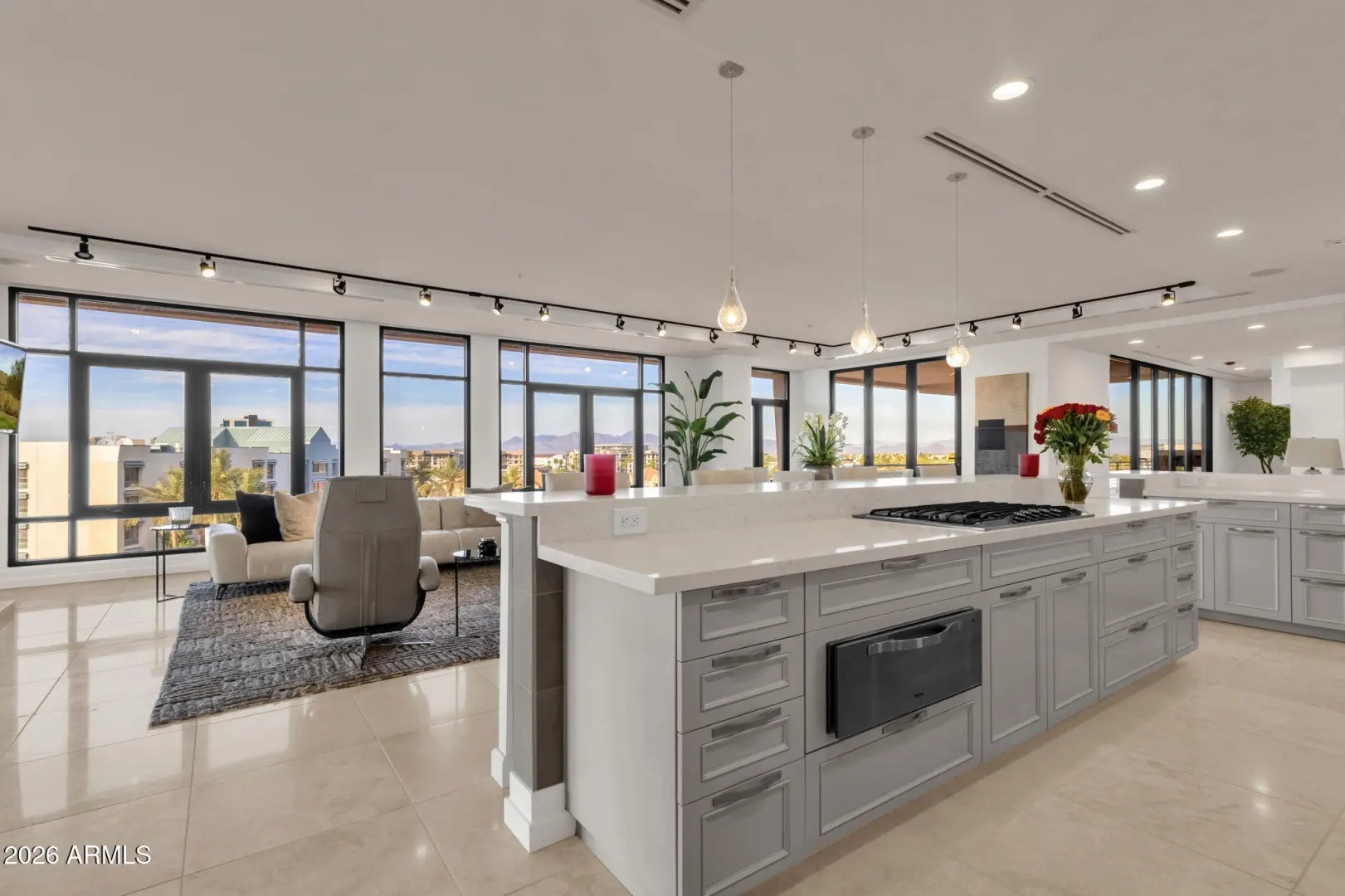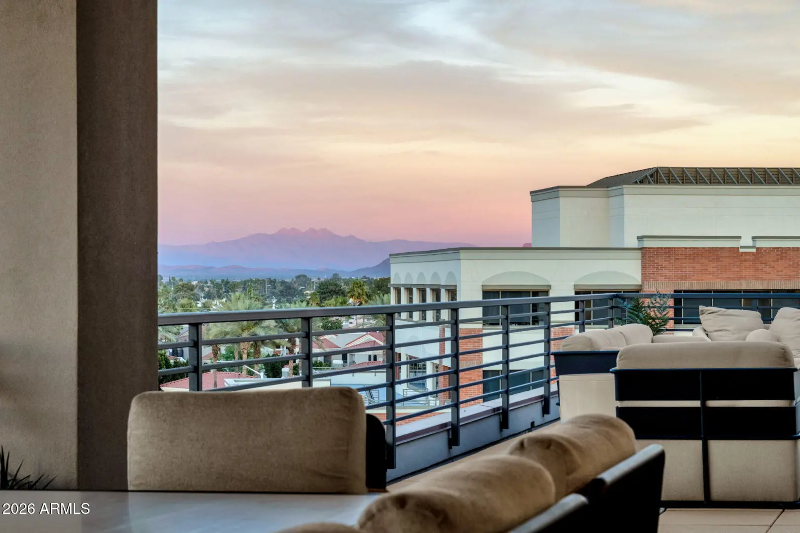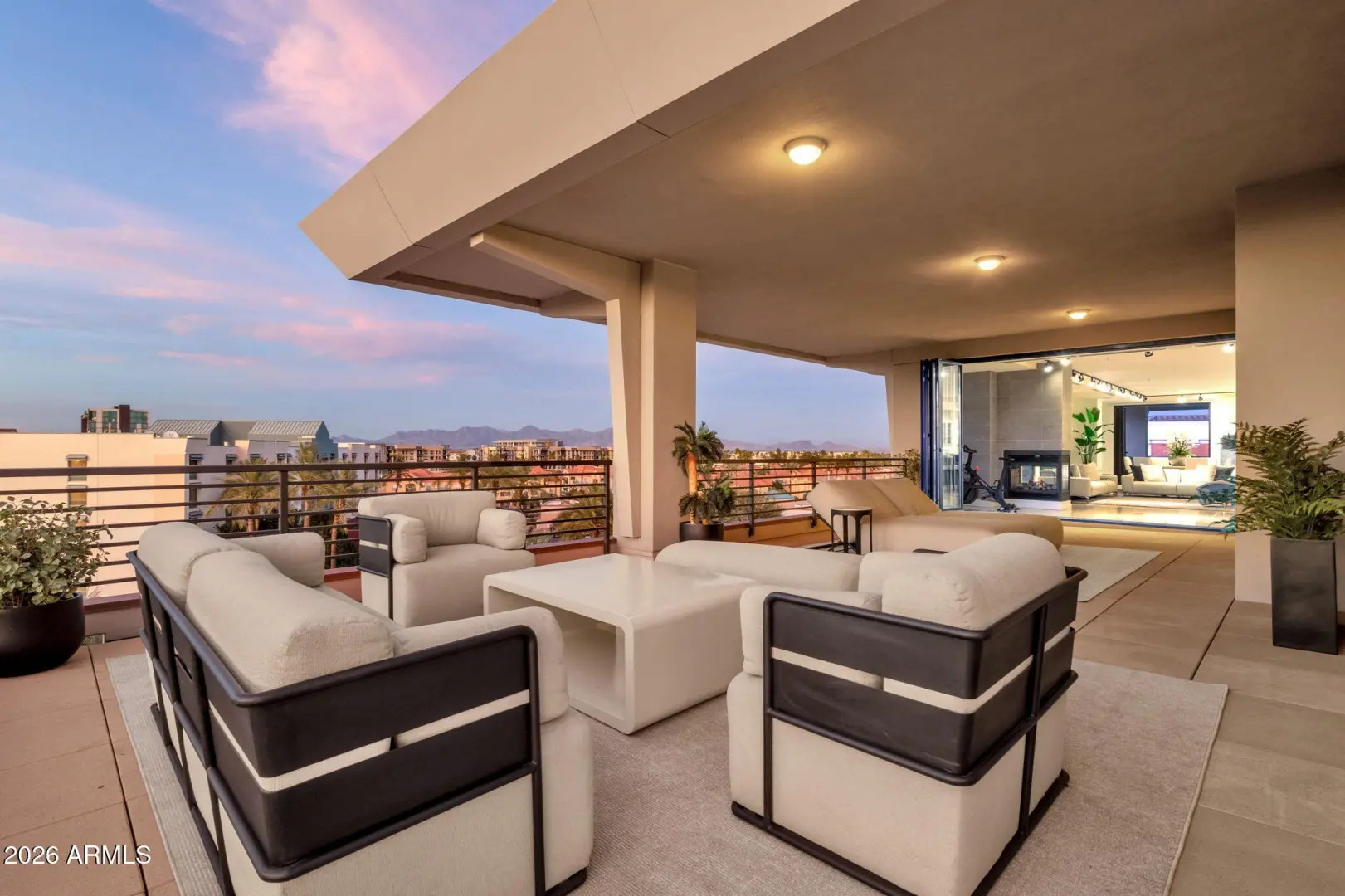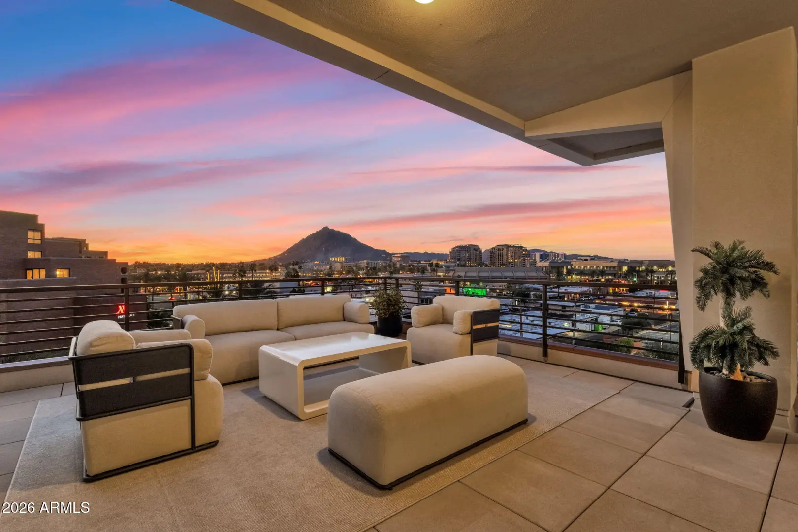 Rare 8.5-car garage, private elevator, and unobstructed Camelback Mountain views set this one-of-a-kind Old Town Scottsdale Penthouse apart, offering over 6,400 sq ft of luxury living. Floor-to-ceiling glass frames the views, creating a dramatic backdrop throughout. The garage includes a private enclosed 2.5-car space plus 6 adjacent secured spaces--ideal for collectors. Designed for elevated living and entertaining, the residence features an open chef's kitchen, Viking appliances, and a butler's pantry with private entrance. Nearly 2,900 sq ft north-facing terrace--the largest in Old Town--creates seamless indoor-outdoor living, with concrete and steel construction, full concierge service, resort-style pool, spa, and gym. Walk to Fashion Square, top restaurants, and night life in minutes