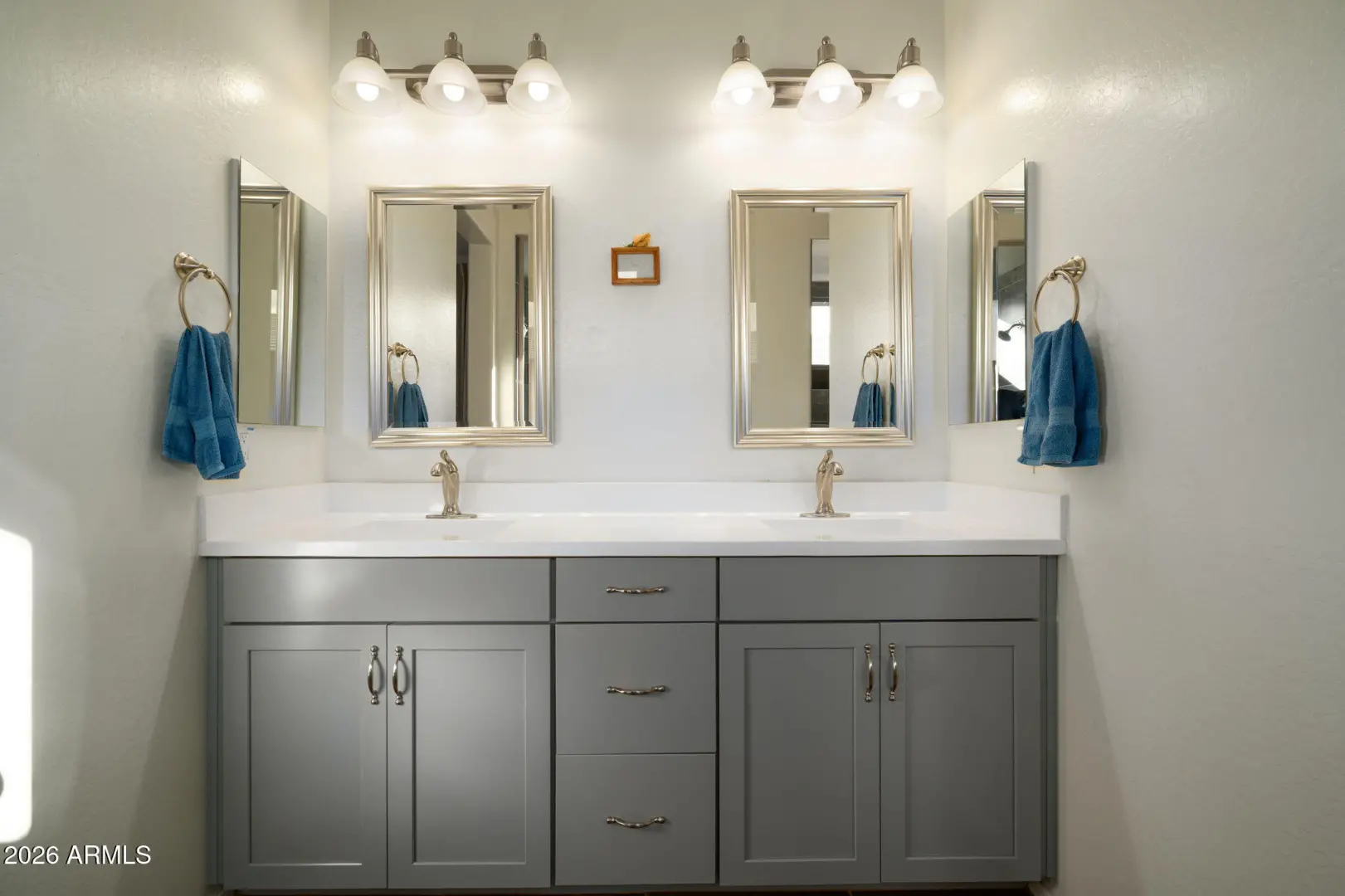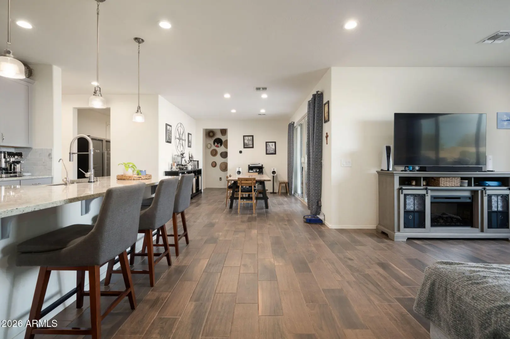 Beautifully upgraded 2019 home offering modern design, thoughtful functionality, and resort-style living. The stunning open kitchen features stainless steel appliances, soft-close cabinetry, an Italian Carrara marble backsplash, walk-in pantry, and seamless flow into the main living space. A favorite feature is the spacious walk-in closet with direct access to the laundry room, creating exceptional everyday convenience. The primary bathroom offers a beautifully tiled walk-in shower. Step outside to a private resort-style backyard with a sparkling pool, water features, LED lighting, and a gas-plumbed grill. Enjoy peace of mind with PAID OFF SOLAR WITH BATTERY PACK, plus an extended RV garage with hookup and permited sewer dump for RV. This home has everything and move in ready!