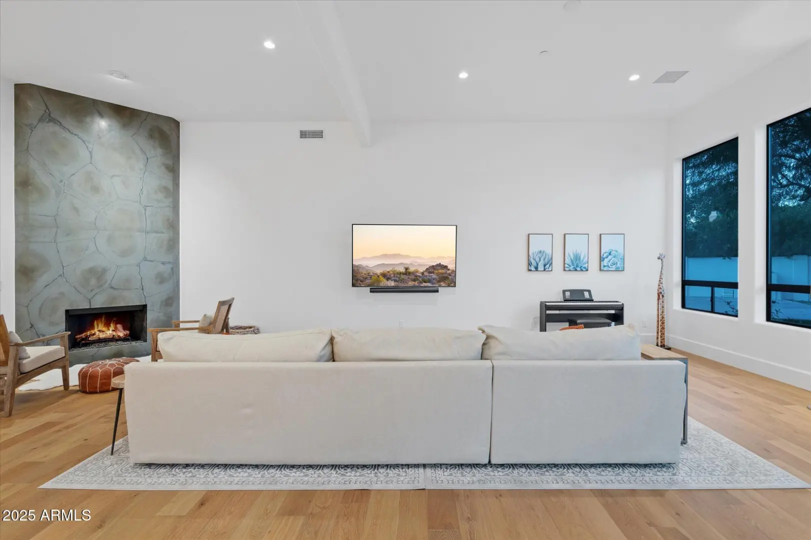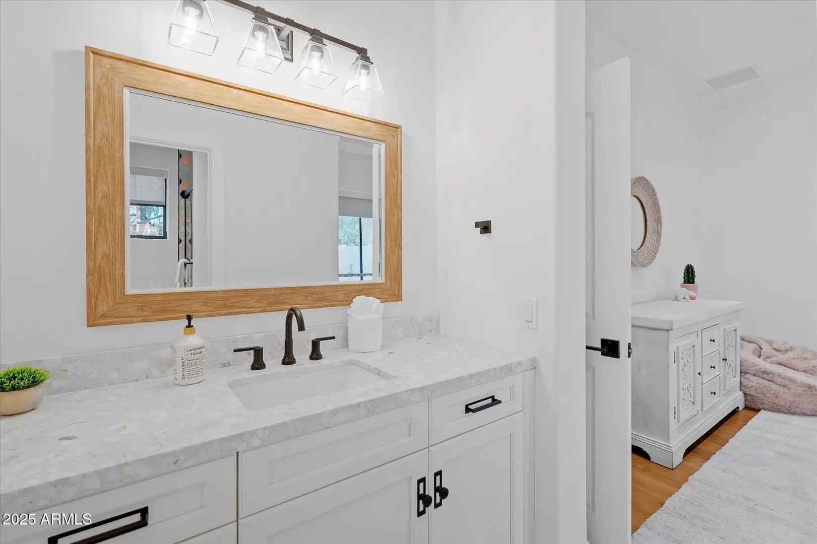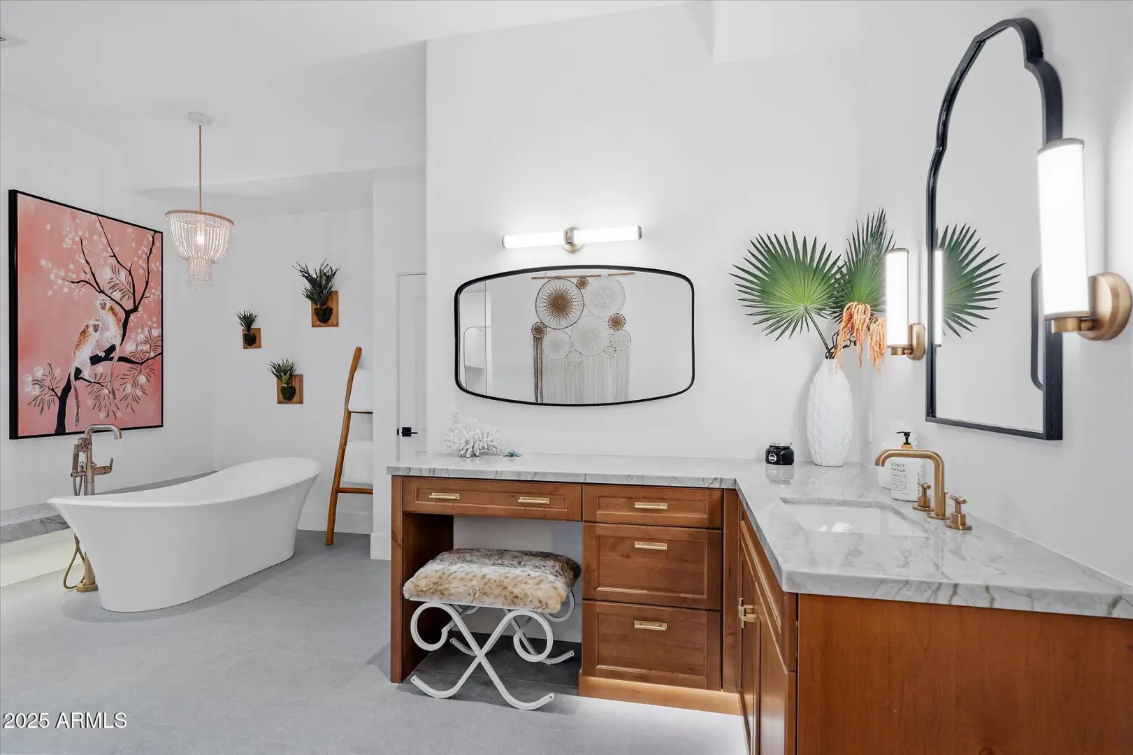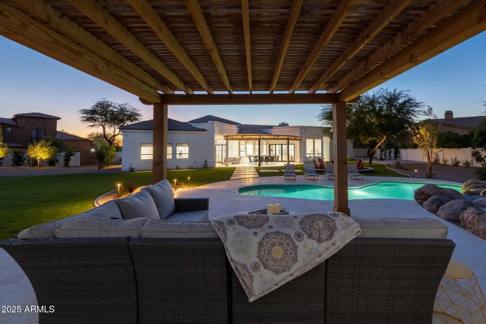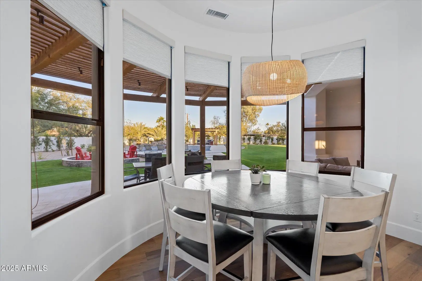 Transitional - Elegantly updated to the nines; iconically flawless and chic. On a quiet Cul-De-Sac, 1.2 acre pie shaped lot, views of McDowell Mountain with NO HOA! All on one level, featuring a gorgeous ''out of a magazine'' look, high end cabinetry throughout, top of the line appliances, stylish wide plank style wood flooring, 5 bedrooms and 4.5 bathrooms, partial light and bright guest quarters in the basement, room for sport court, tennis, BBQ or Guest Home or RV Garage. Expansive motor court leads into a fantastic Garage setup for car lovers who value space and access.